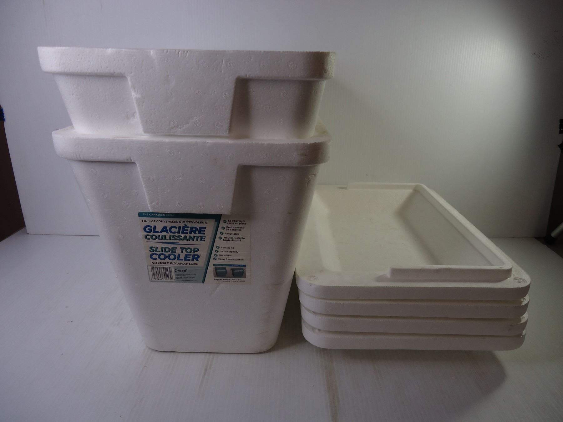 (2) Cryopack Styrofoam Coolers- 24 Can Capacity with (2) Extra Lids
