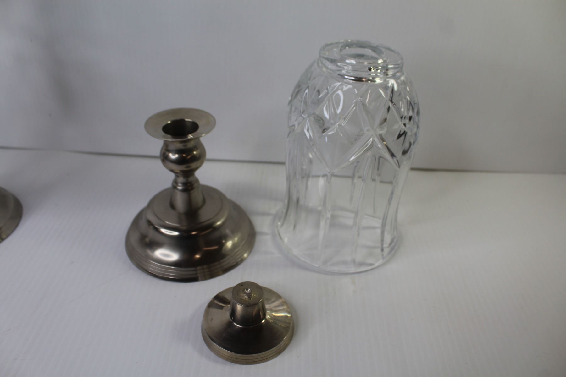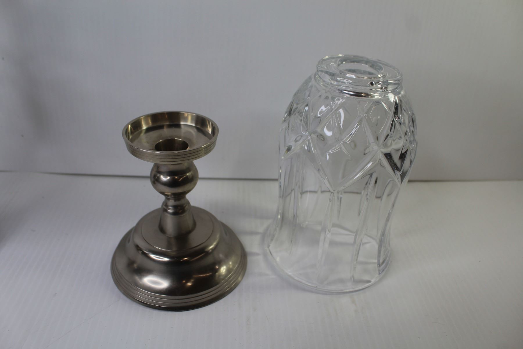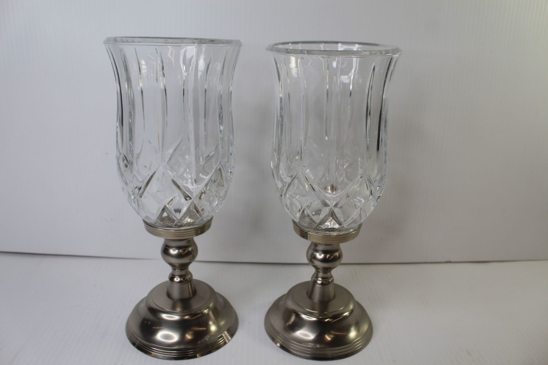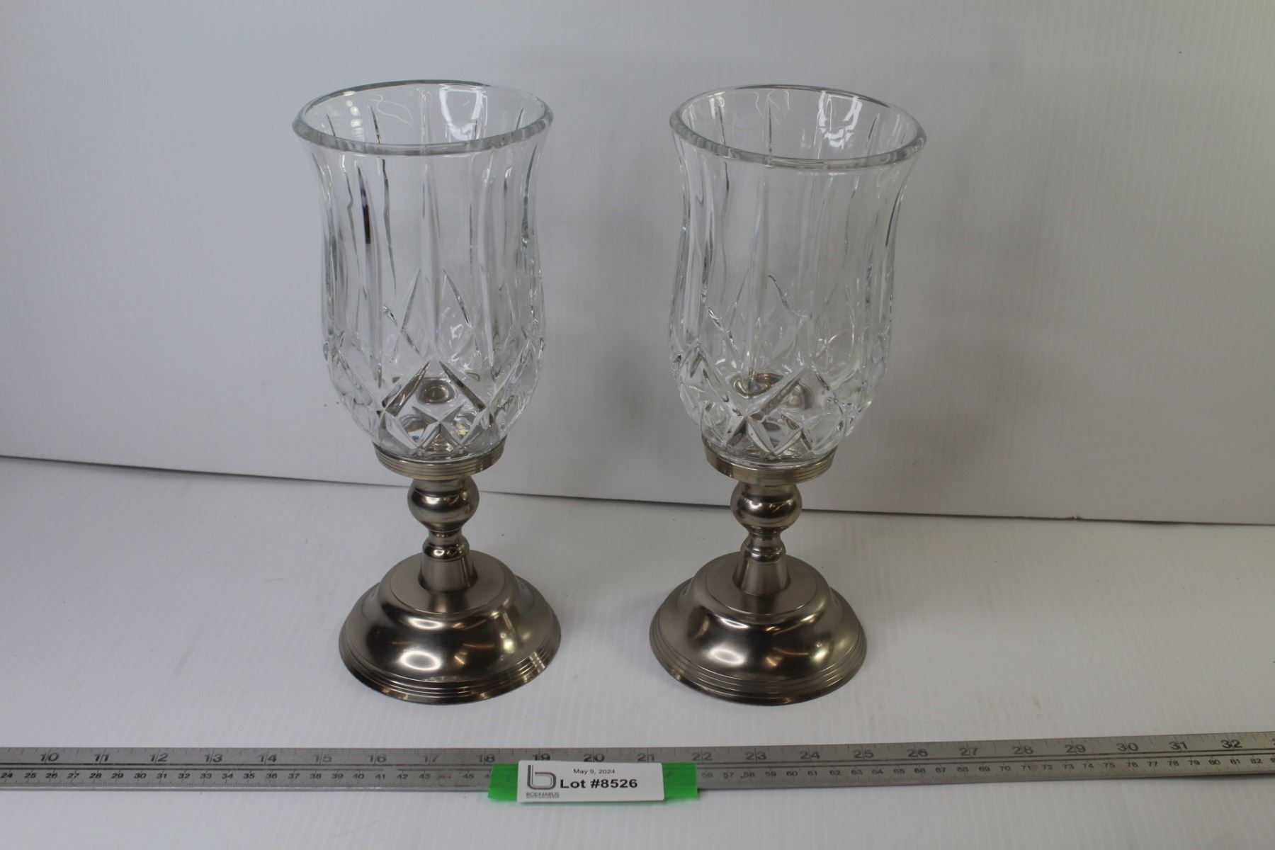 (2) Crystal Candle Holders on Metal Stands (look unused)