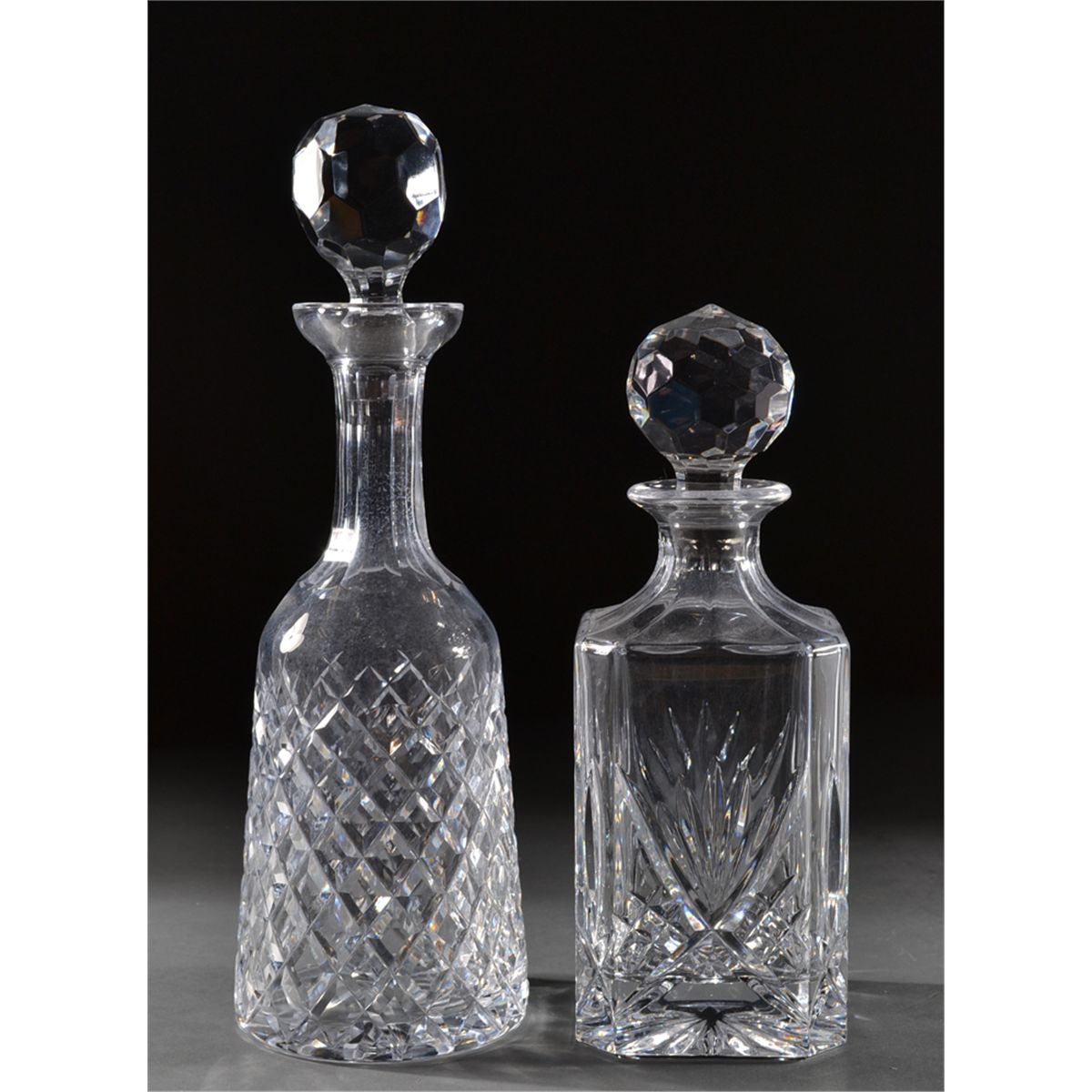 To include a Rogaska with faceted stopper and a crystal decanter with diamond decoration a faceted circular stopper. Tallest is 13" H. Private collection Ada, MI.