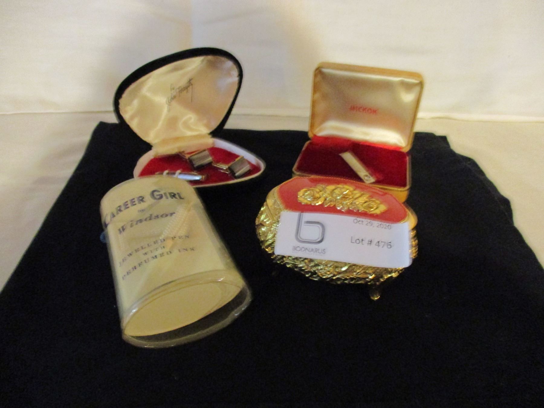 2 Cuff Link Sets N.I.B and Small Jewelry Case and Career Girl Jeweled Pen, and Ink by Windsor