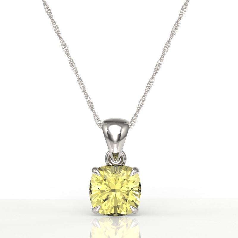 REF-28A2X -21960 ---- 2 Cushion Cut CTW Sapphire Designer Solitaire Necklace 18K White Gold ---- Luxury Designer Brand Necklace Appraised at $1,700 Certificate Number US21960 18k White gold, Necklace Size is 16 Inches, Necklace measuring approx. 9 mm x 9 mm, weighing in total approx. 2.6 grams. Made in the USA and is stamped 18k, Main stone 2 carat total weight containing 1 pieces of Mid-Opaque-Deep Blue color with AAA quality Cushion shape cut Sapphire , Stone #2 carat total weight containing pieces of color with quality shape cut