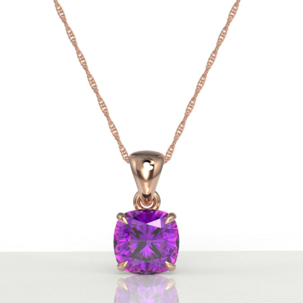 REF-15A3N - SKU: 21928 ---- 2 Cushion Cut ctw Amethyst Designer Solitaire Necklace 14k Rose Gold