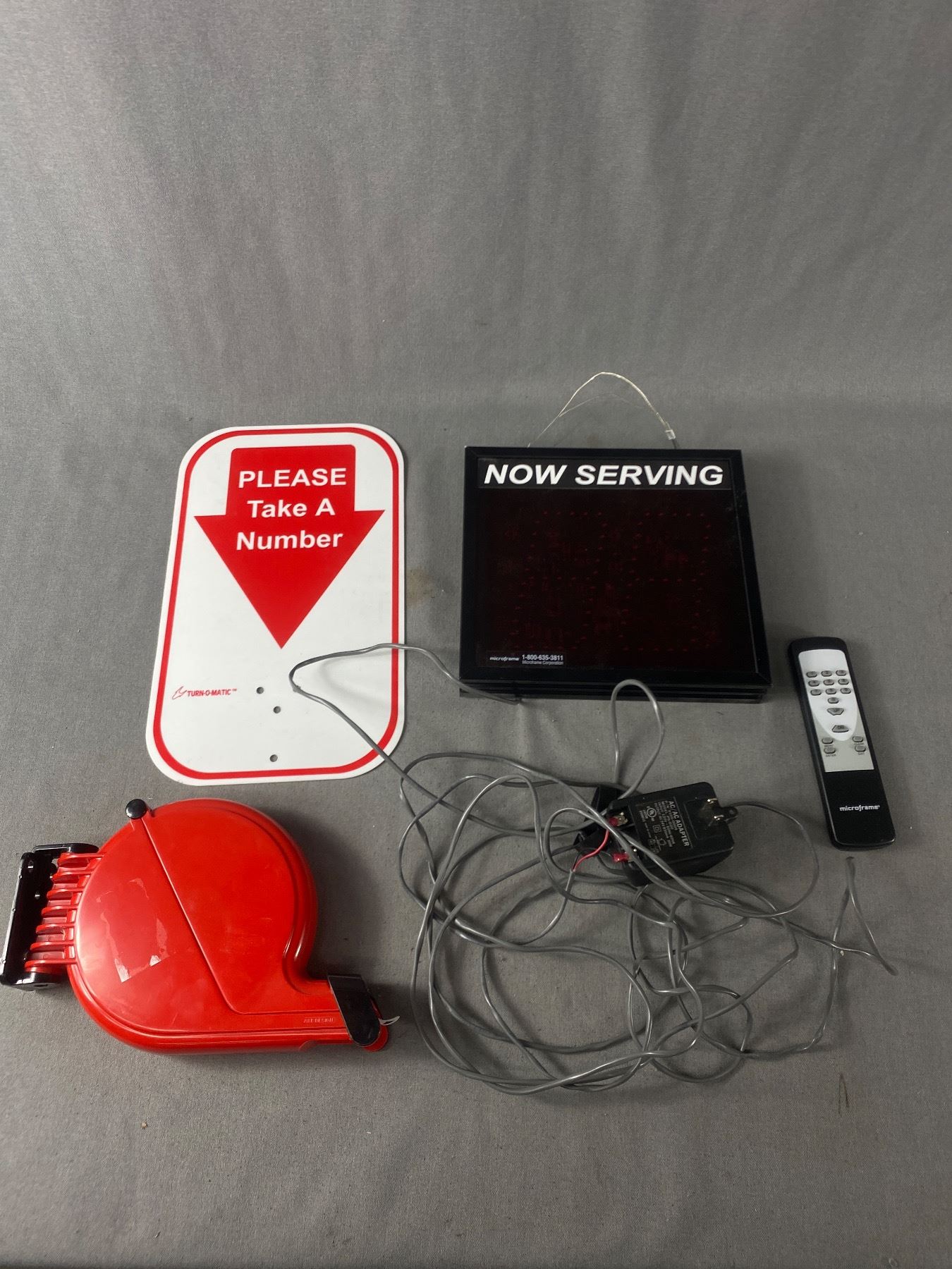 2 Customer Queuing Systems - Turn-O-Matic "Please Take A Number" & Micro frame "Now Serving"