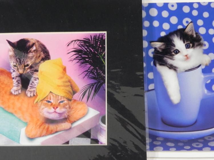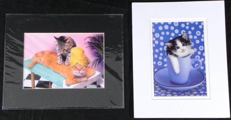 2 Cute Cat Photo Prints Matted -Kitten in Mug, Massage