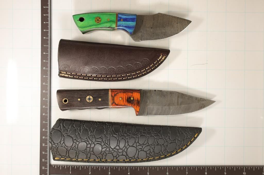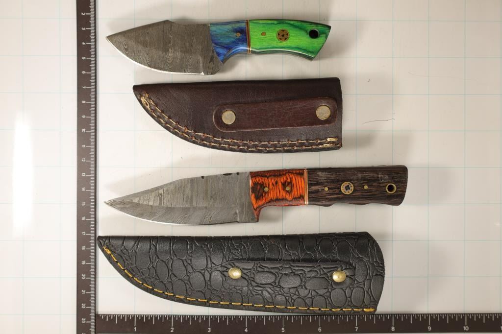 BOTH BRAND NEW IN LEATHER SHEATHS THAT ARE BLACK AND BROWN IN COLOR. GREAT FOR THE HUNTING CABIN, TRUCK, GARAGE TACKLE BOX OR GIVEN AS A GIFT.