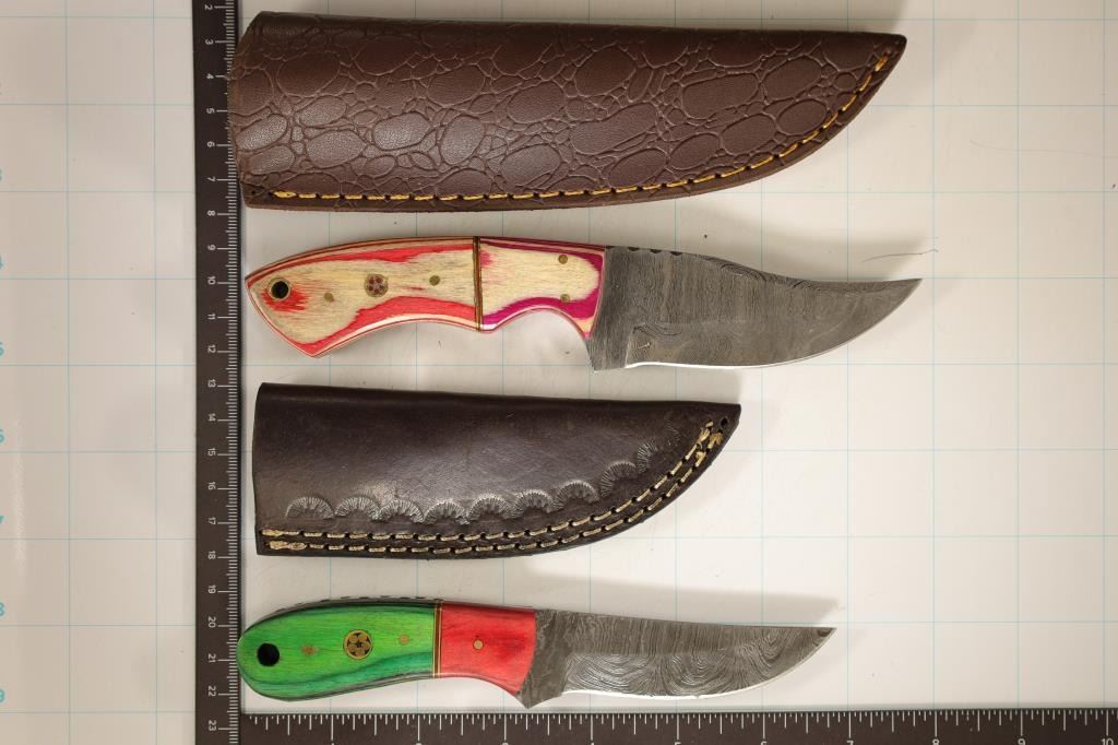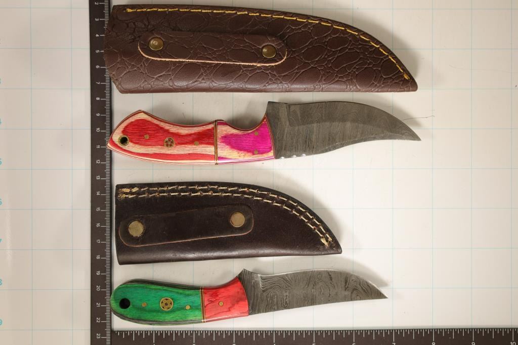 BOTH BRAND NEW IN LEATHER SHEATHS THAT ARE BROWN AND BROWN IN COLOR. GREAT FOR THE HUNTING CABIN, TRUCK, GARAGE TACKLE BOX OR GIVEN AS A GIFT.