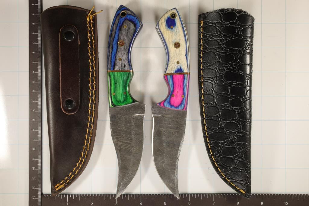 7 5/8" IN LENGTH AND COMES WITH A LEATHER SHEATH. BRAND NEW CONDITION. GREAT PIECES FOR YOURSELF OR FOR A GIFT. THESE USUALLY SELL FOR $100 EACH