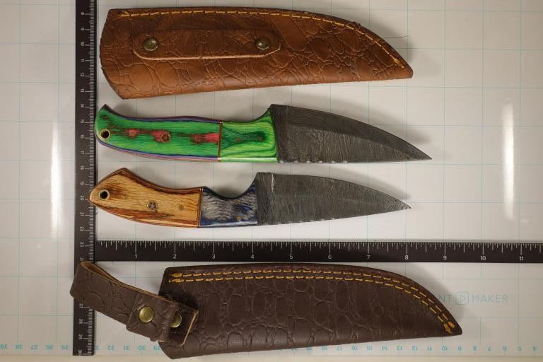 LEATHER SHEATHS. BOTH ARE BRAND NEW. PERFECT FOR GIFTS, FISHING, HUNTING, SELF DEFENSE, GARAGE, CAR OR MANY OTHER USES
