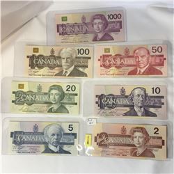 314 - Canada "BIRD SERIES" SET of 7 Bills!!!! $2, $5, $10, $20, $50, $100, $1000Scribner Auction Ltd.