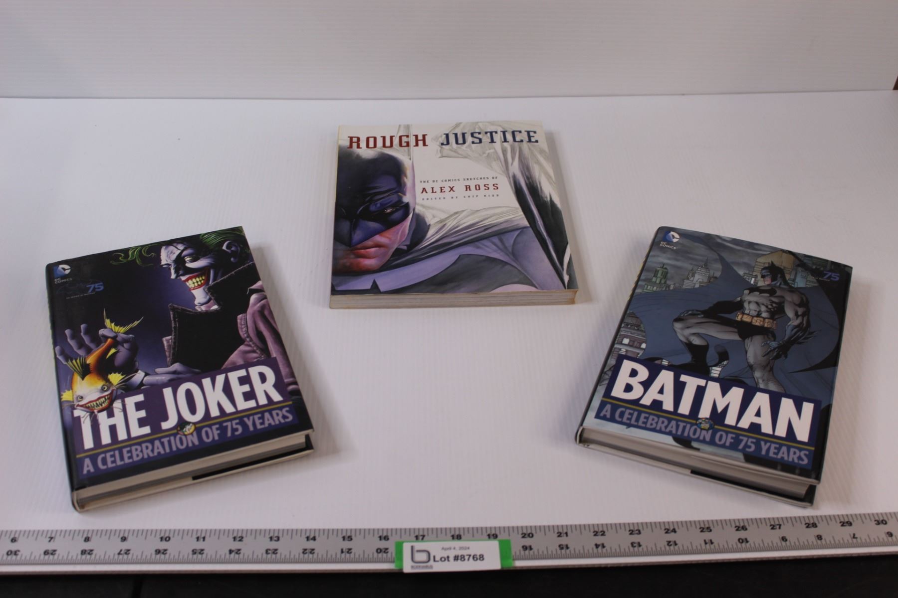(2) DC Comics "The Joker" and "Batman" 75 Years Hardcover Comics & Rough Justice Soft Cover Sketches Book