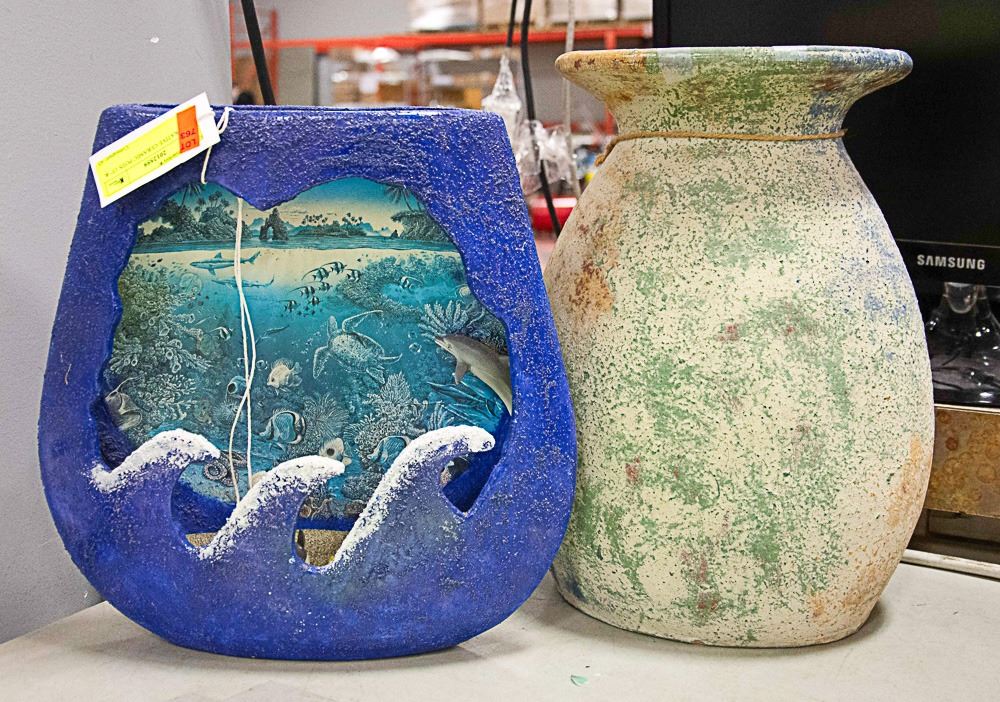 2 DECORATIVE CERAMIC POTS 13" & 14"