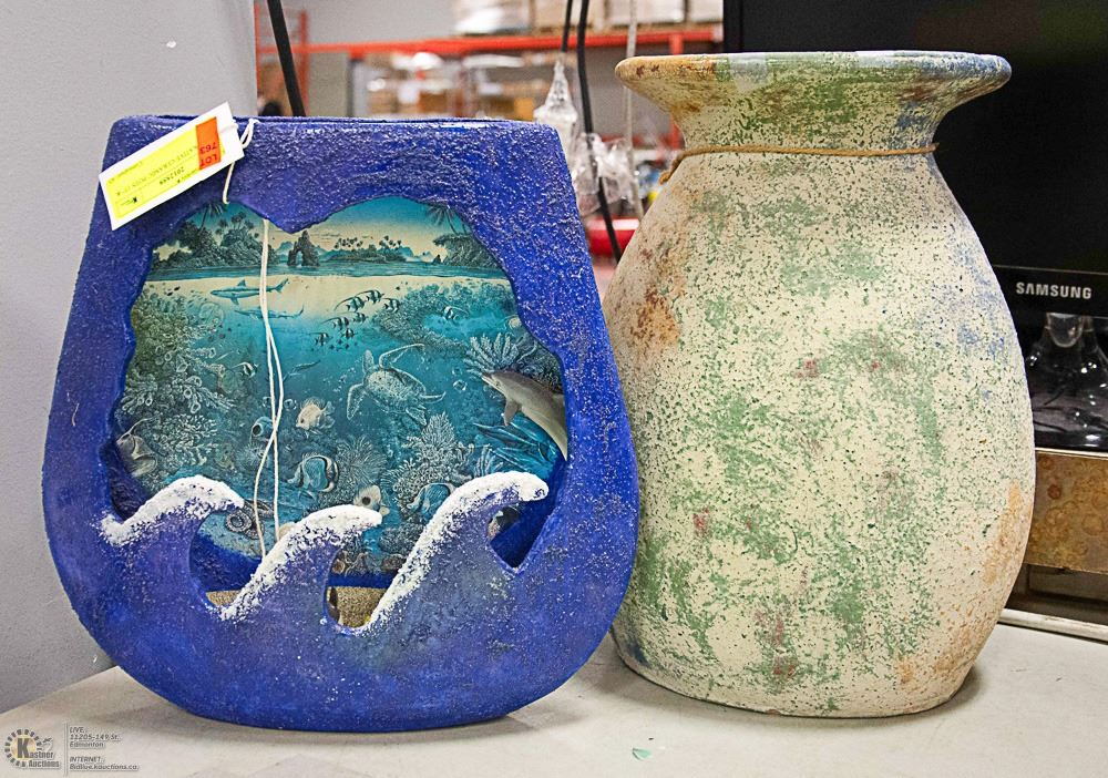 2 DECORATIVE CERAMIC POTS 13" & 14"