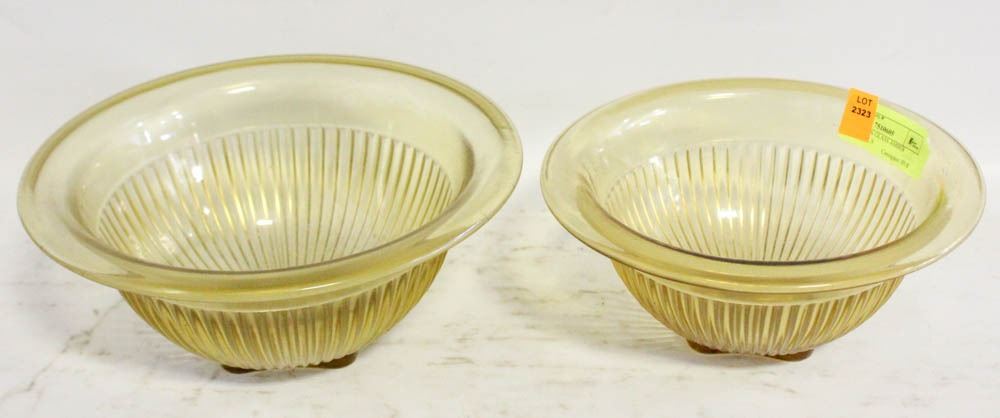 2 DEPRESSION GLASS AMBER RIBBED BOWLS