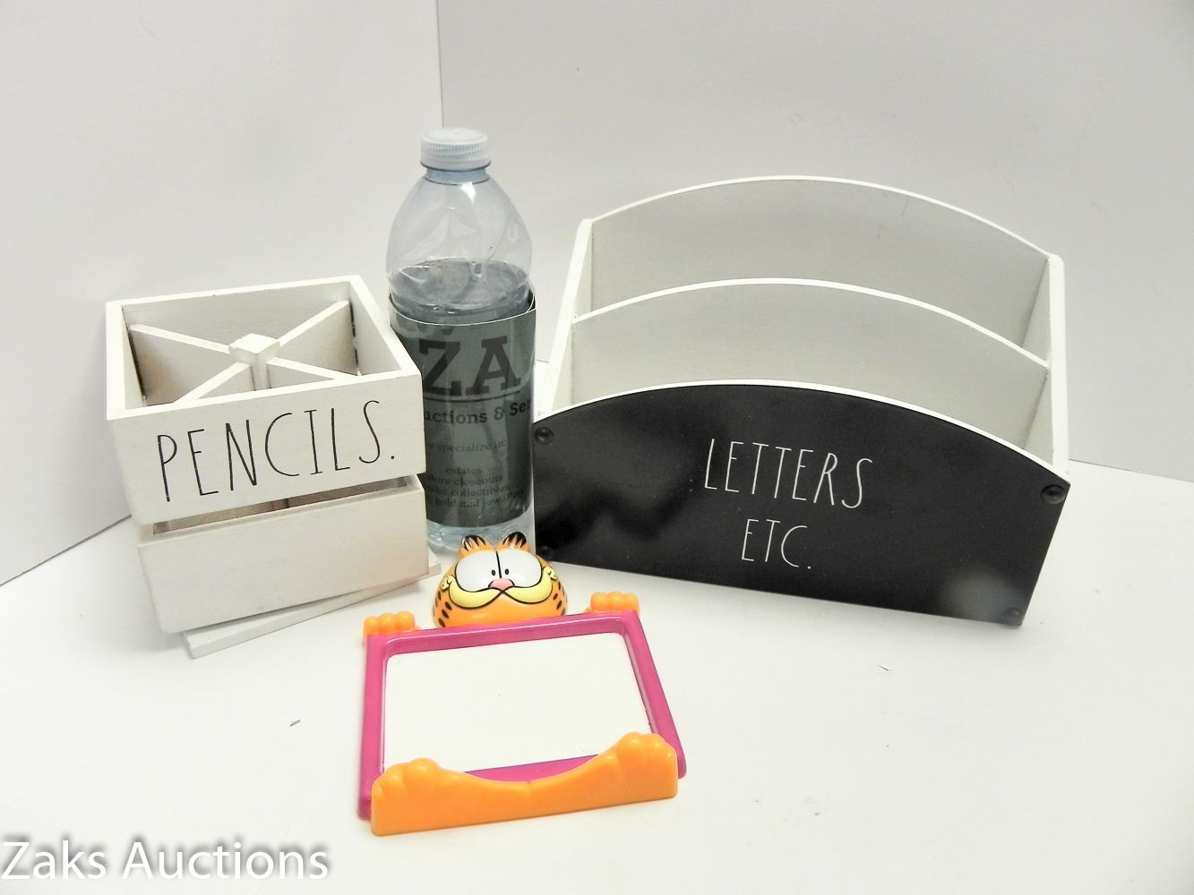 2 DESK ORGANIZERS AND MINI GARFIELD WHITE BOARD