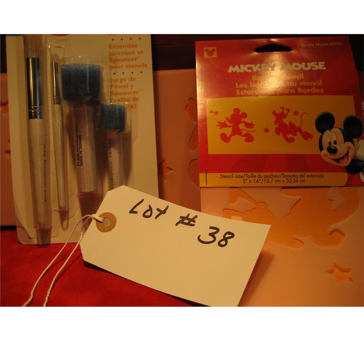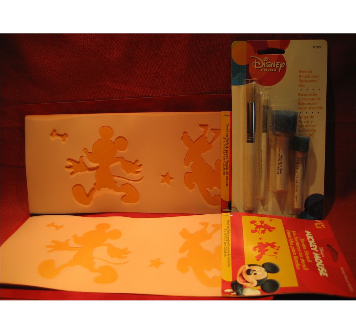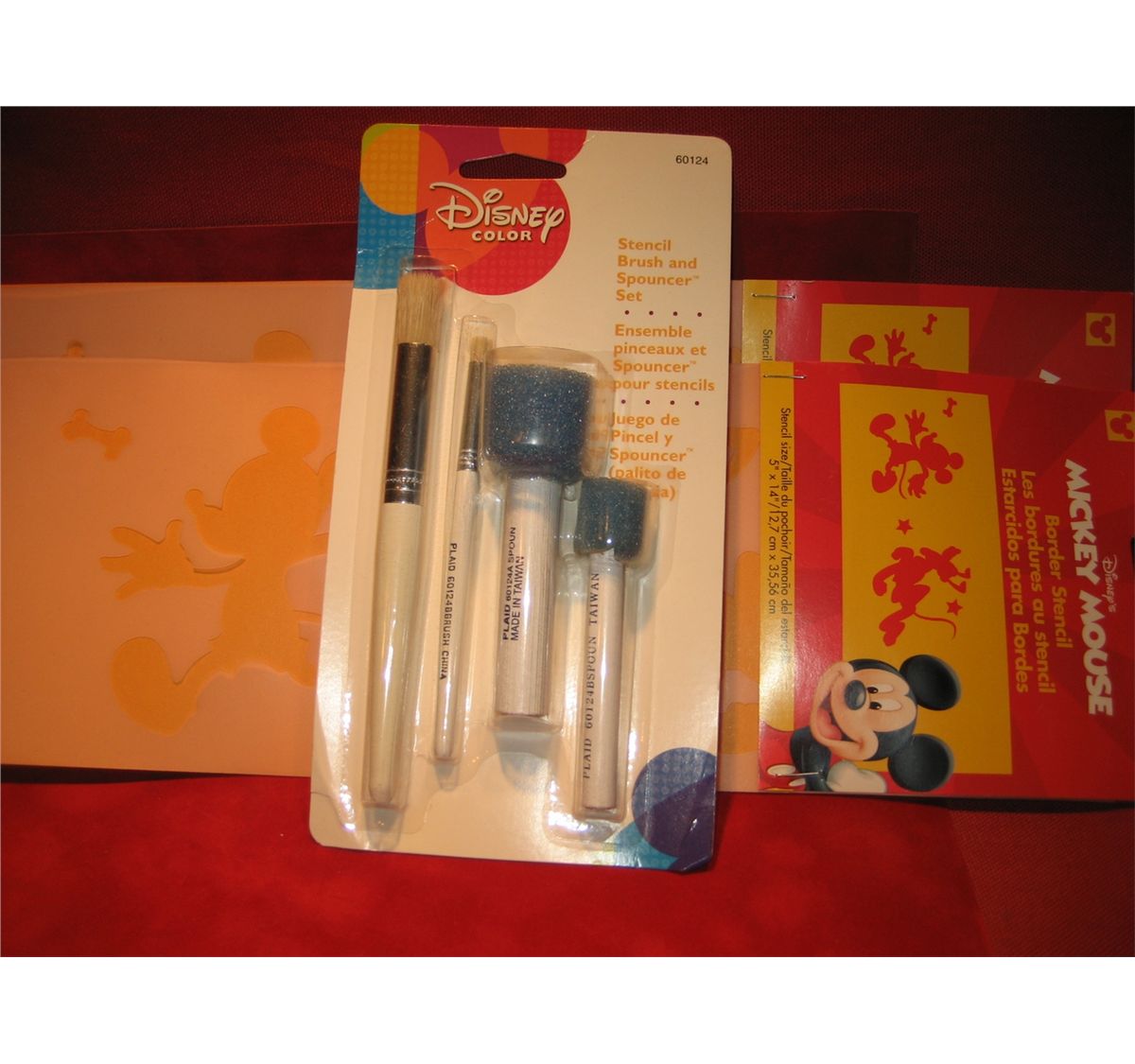 (3) (2)DISNEY MICKEY MOUSE STENCIL & (1)SPONGE BRUSH