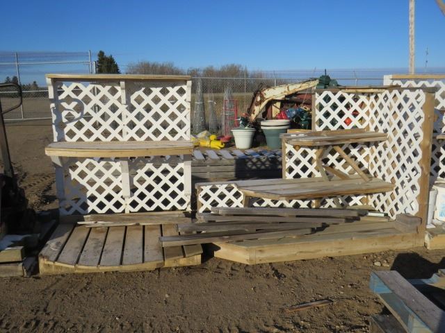 2 DISPLAY RACKS-LATTICE BACKS (1 CORNER SHELF, 1 48"LONG) 4 48" CEDAR SHELVES