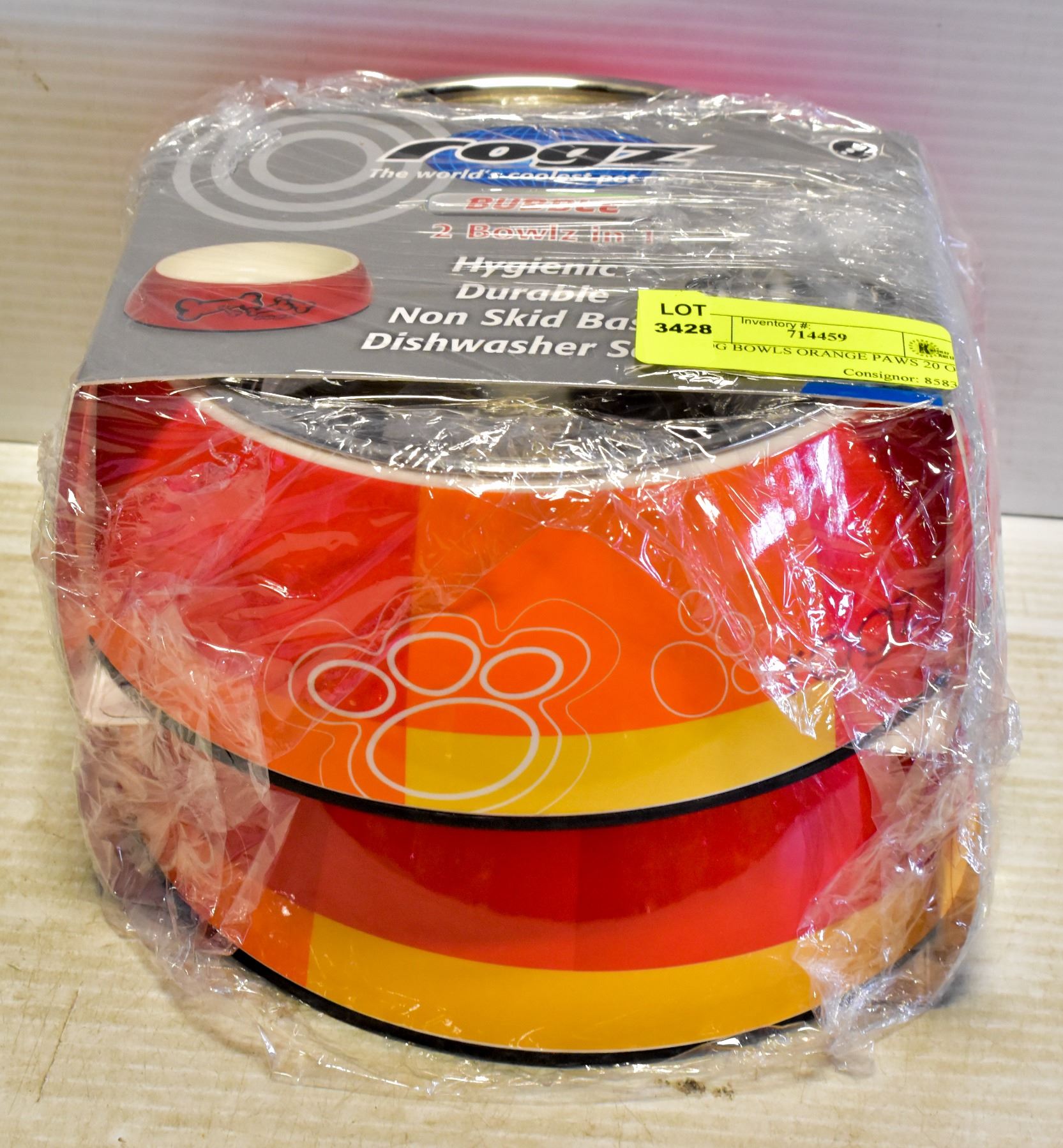 2 DOG BOWLS ORANGE PAWS 20 OZ