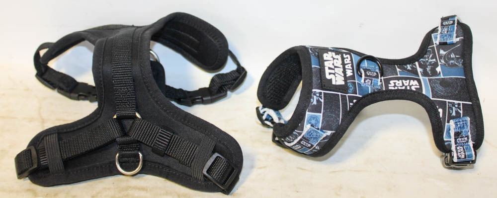 2- DOG HARNESSES. SIZE XS; STARWARS & BLACK