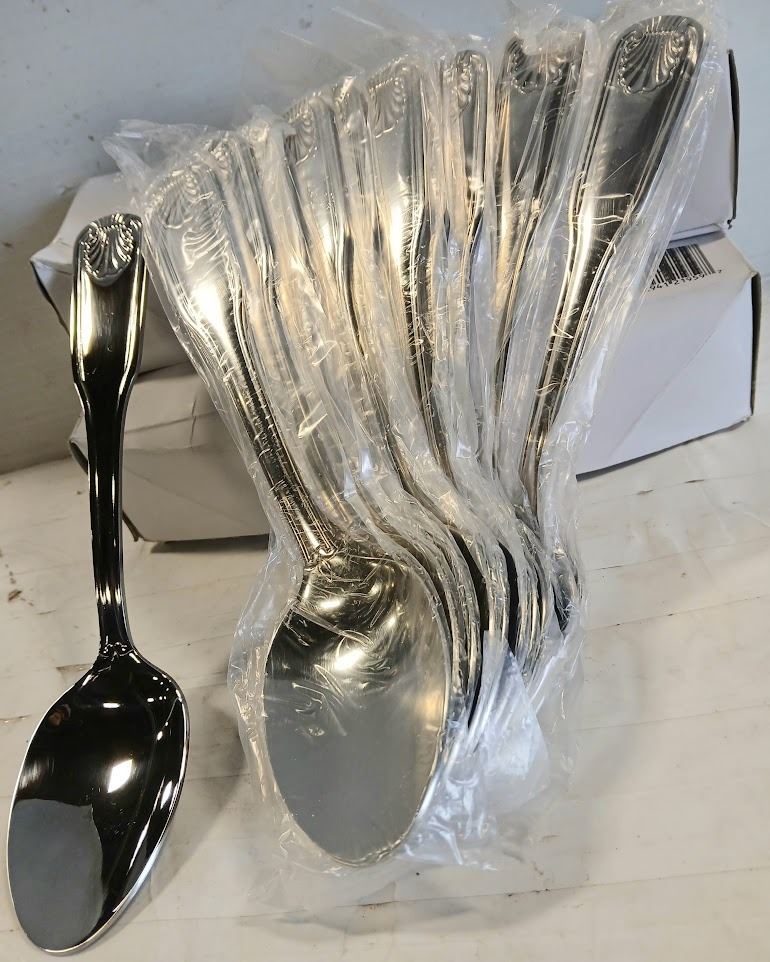 2 DOZEN NEW SHELL DINNER / TABLE SPOONS -JR 21959