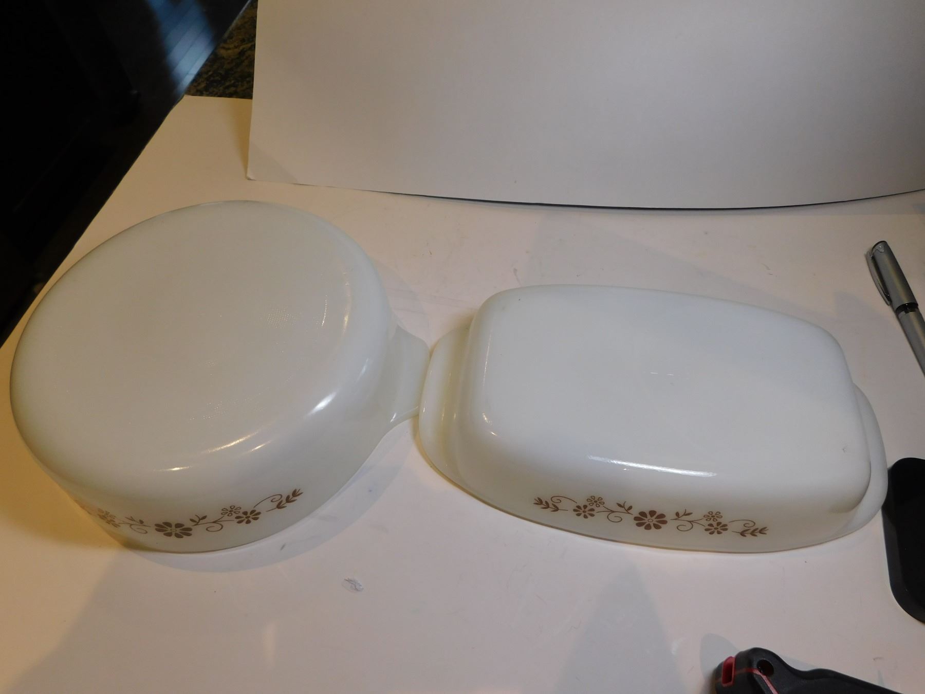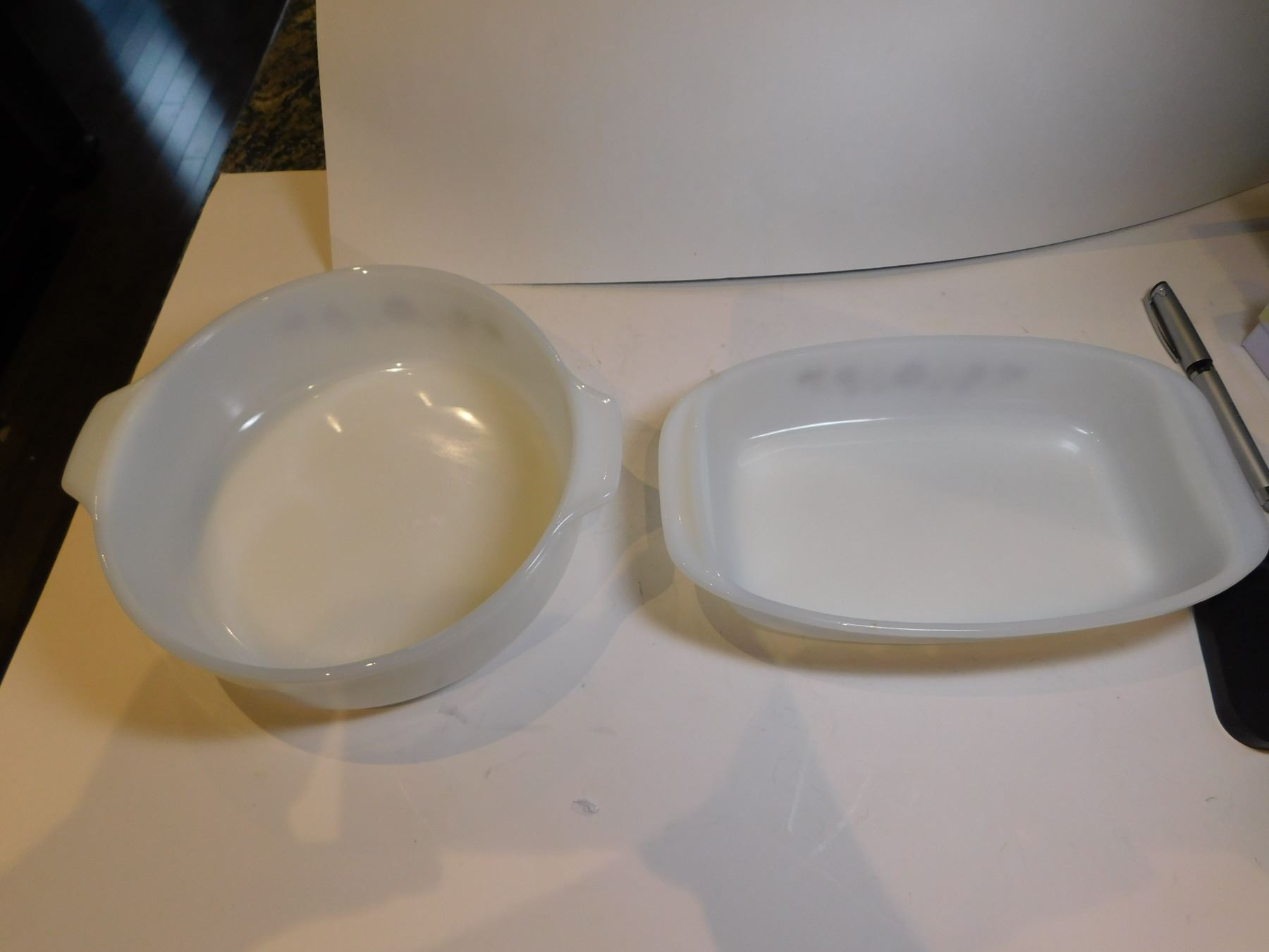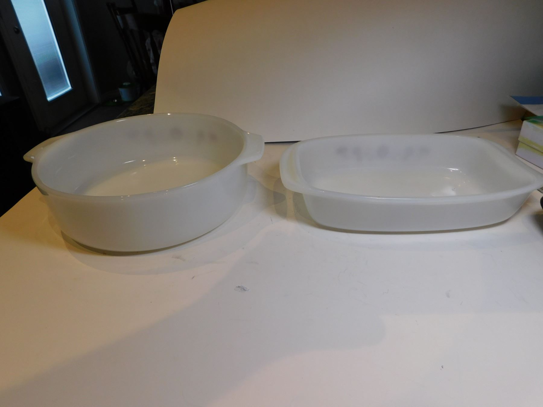 2 DYNAWRE PYR-O-REY MILK GLASS CASSEROLE DISHES