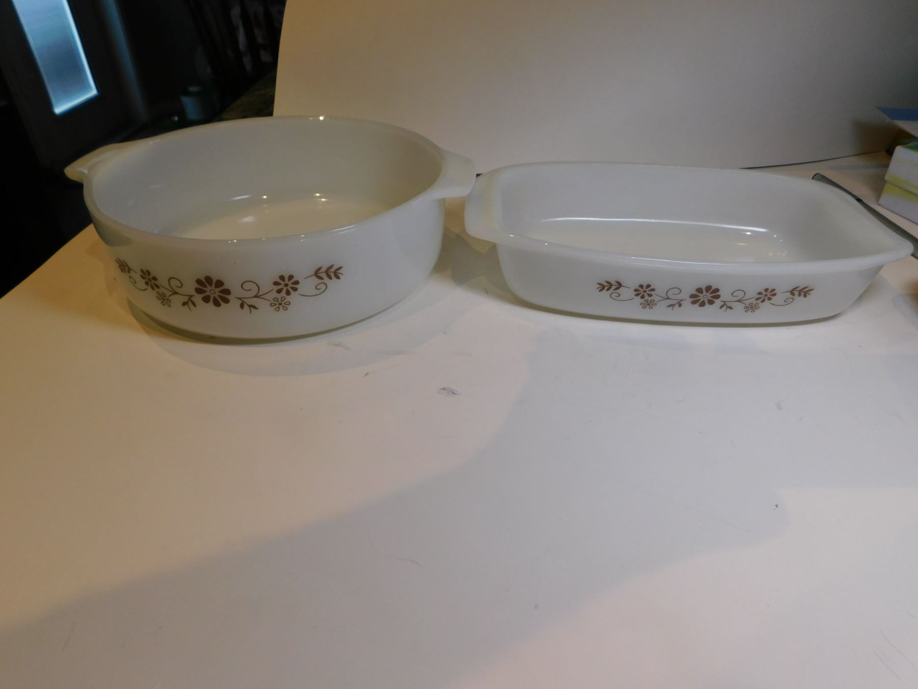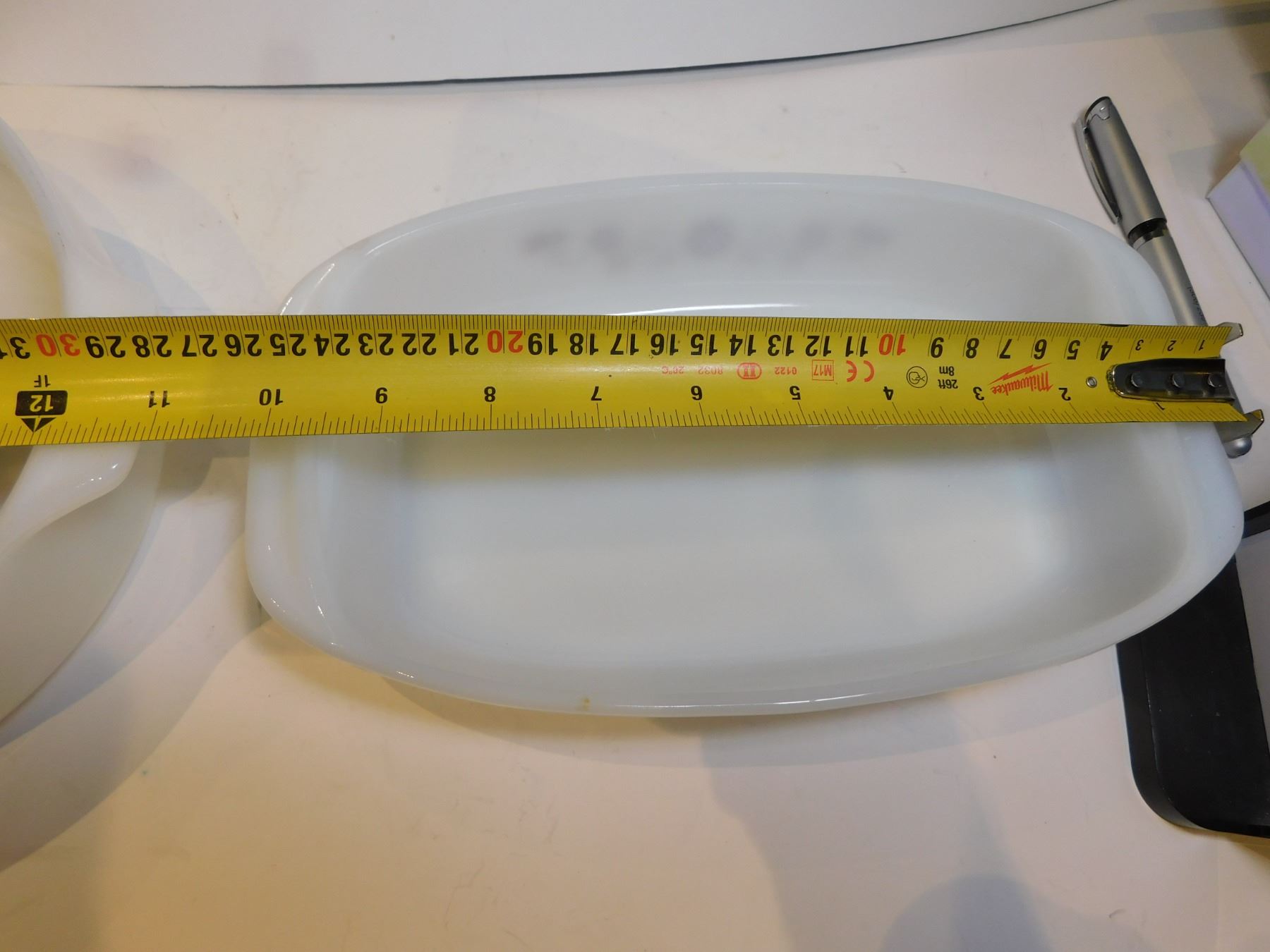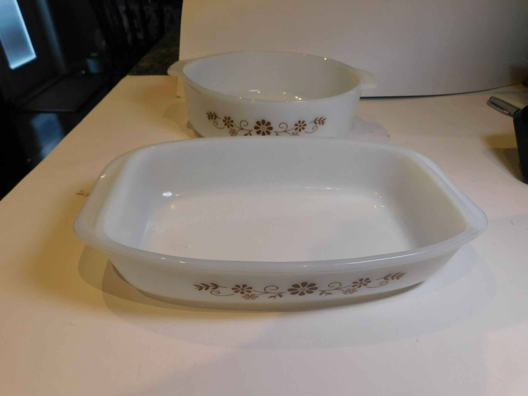 2 DYNAWRE PYR-O-REY MILK GLASS CASSEROLE DISHES