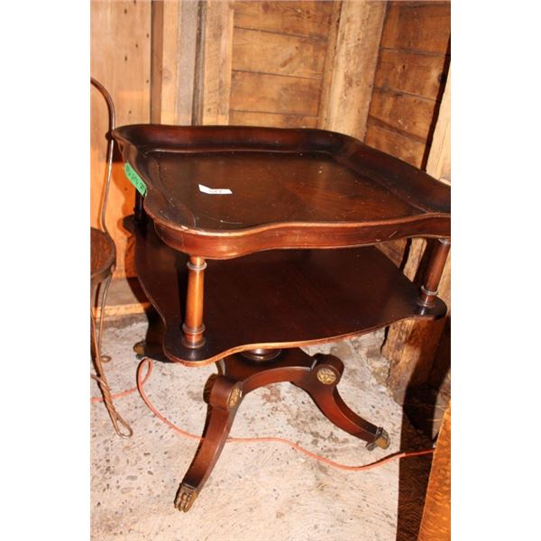 Antique 2 tiered end table 27"w x 27"d x 29"h577 - Antique 2 tiered end table 27"w x 27"d x 29"h