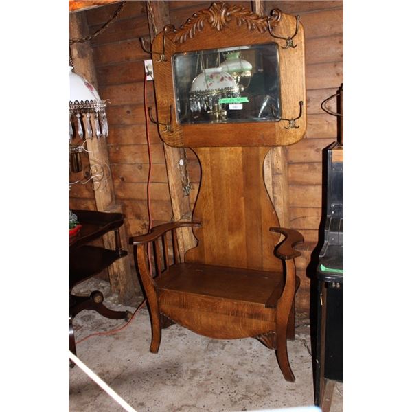Antique Hall Tree Coat Rack Mirror Garment Rack582 - Antique Hall Tree Coat Rack Mirror Garment Rack