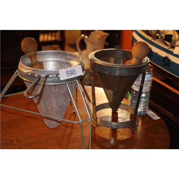 Vintage strainers  w/ stands and wooden590 - Vintage strainers w/ stands and wooden