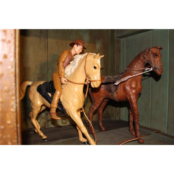 Leather Covered Horse with glass eyes Plastic Beige horse is MARX Toy