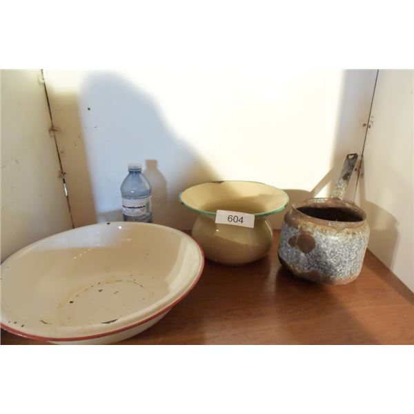 Enameled bowl, enameled dipper, enameled spittoon604 - Enameled bowl, enameled dipper, enameled spittoon