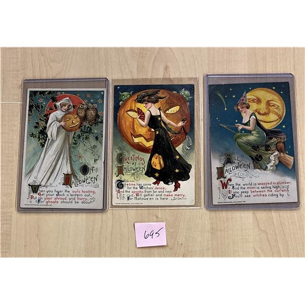 3 Winsch Halloween Ladies, Ghost & Witch Holiday Postcards