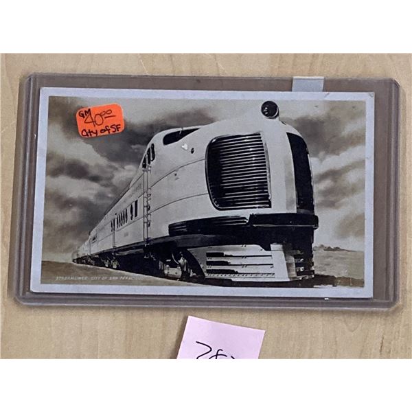 On back is written: #112, "Streamliner, City of Denver" Denver to Chicago. "First Run", June 18, 1936 Denver, Colo. 40 MPH. 3-28...