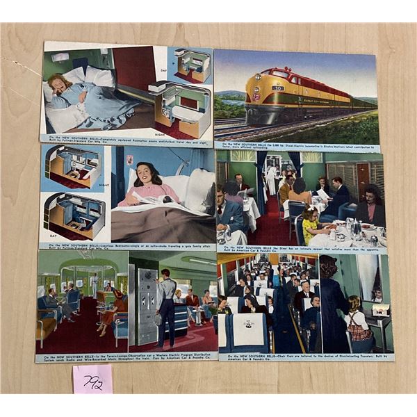 6 New Southern Belle Linen Train Streamliner Advertising Postcards