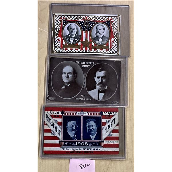 3 different cards. Two for Bryan & Kern, one for Roosevelt & Taft. Used & unused.