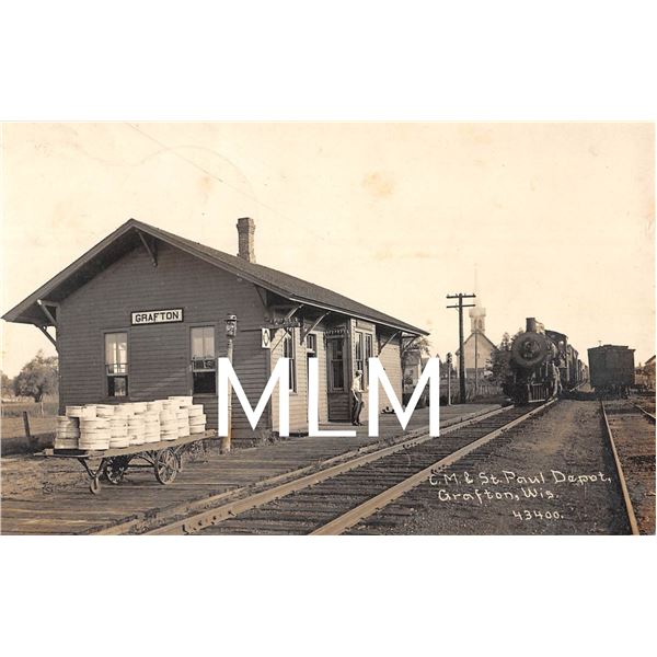C.M. & St. Paul Train Depot Grafton, Wisconsin Photo Postcard