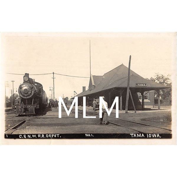 C. & N.W. Railroad Train Station Depot Tama, Iowa Photo Postcard