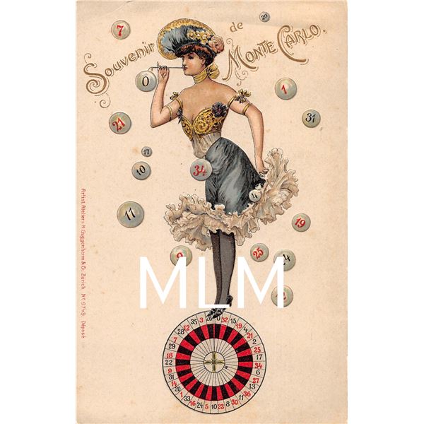Souvenir de Monte Carlo Pretty Lady Fantasy Gambling Postcard