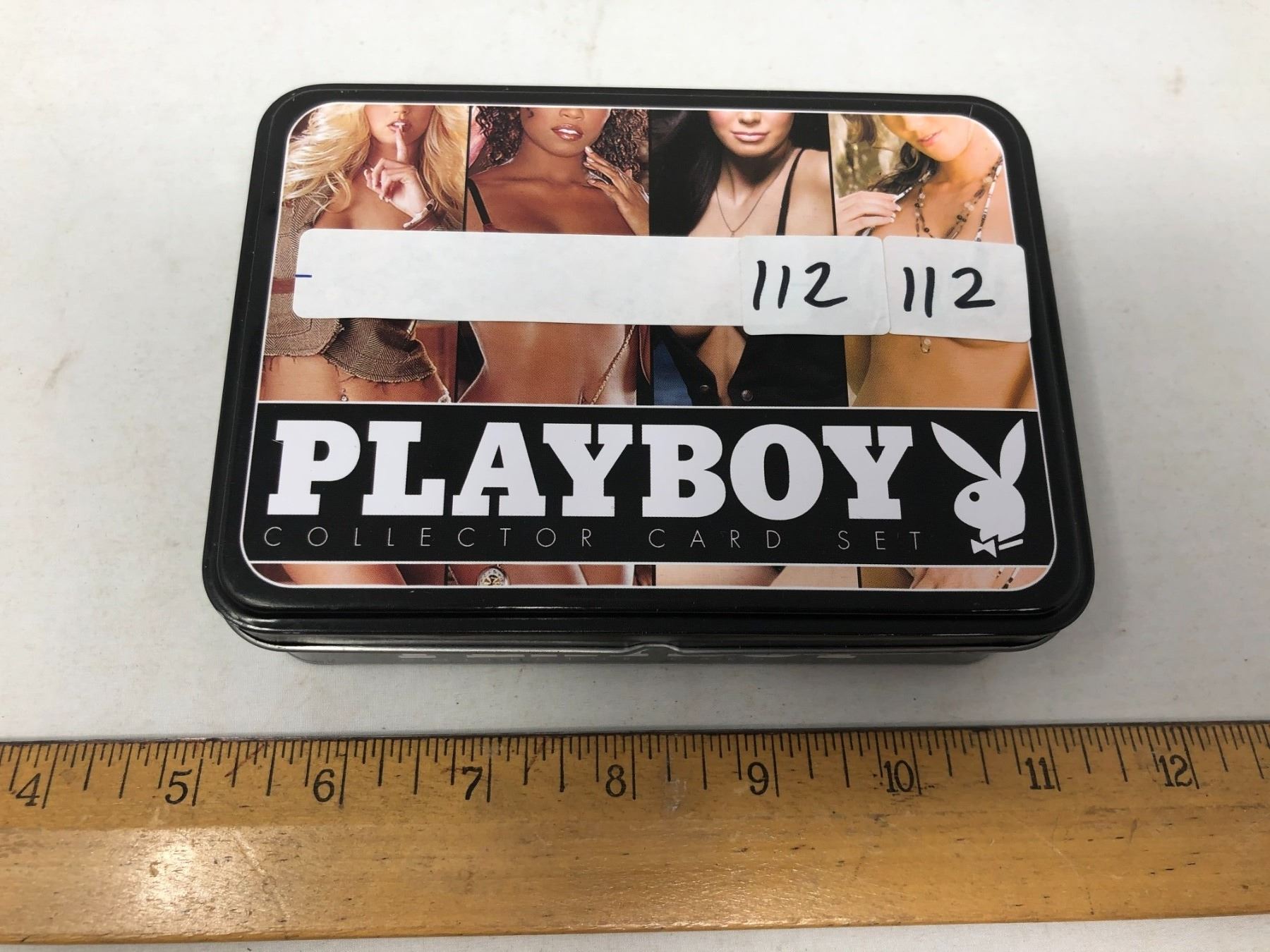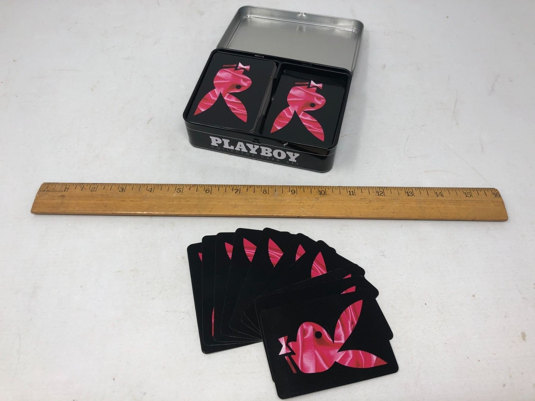Playboy collector card set, 2011. Tin contains two unique playboy inspired decks of playing cards (each card is different).