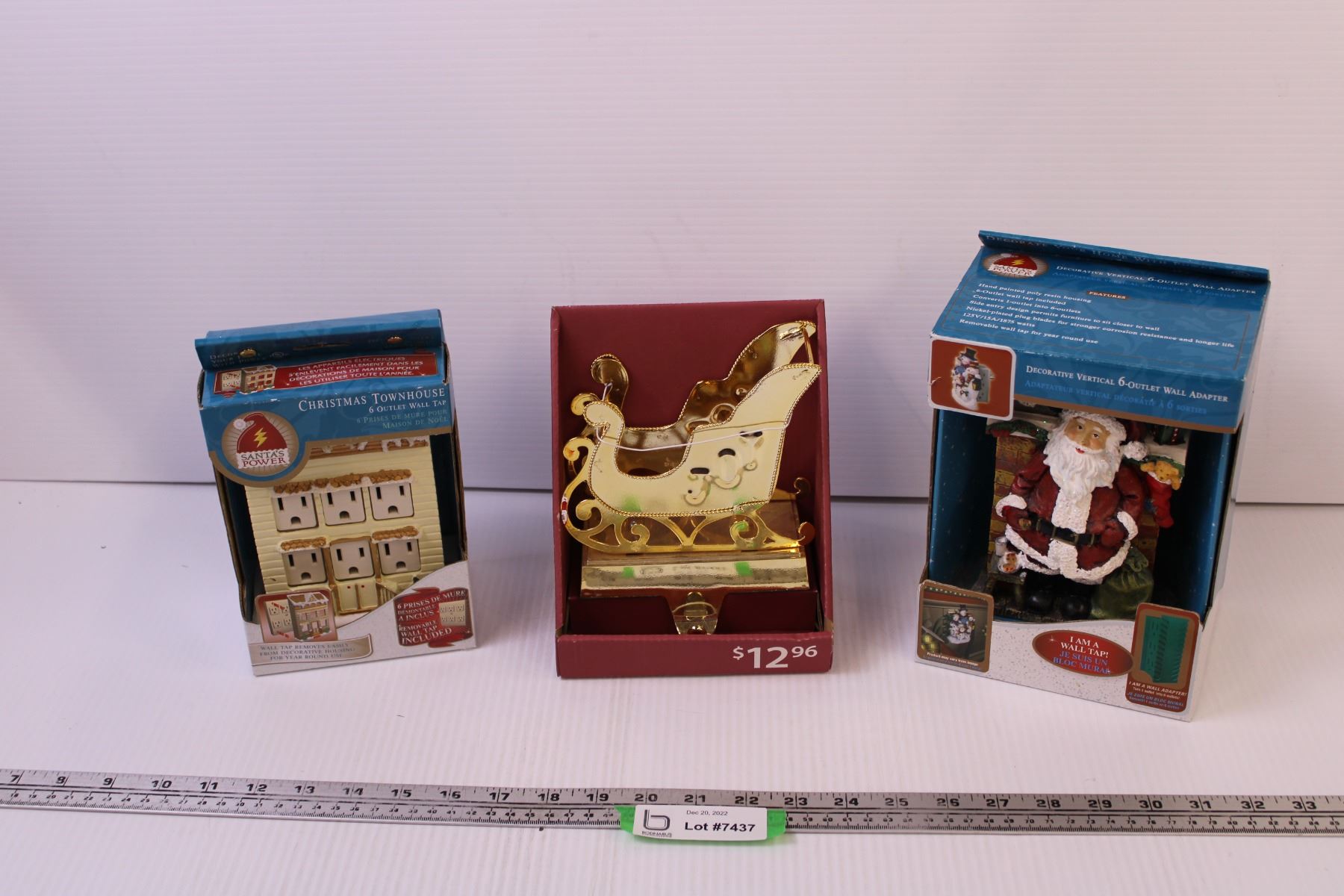 (2) Decorative Outlet Adapters + Stocking Hanger (New Old Stock)