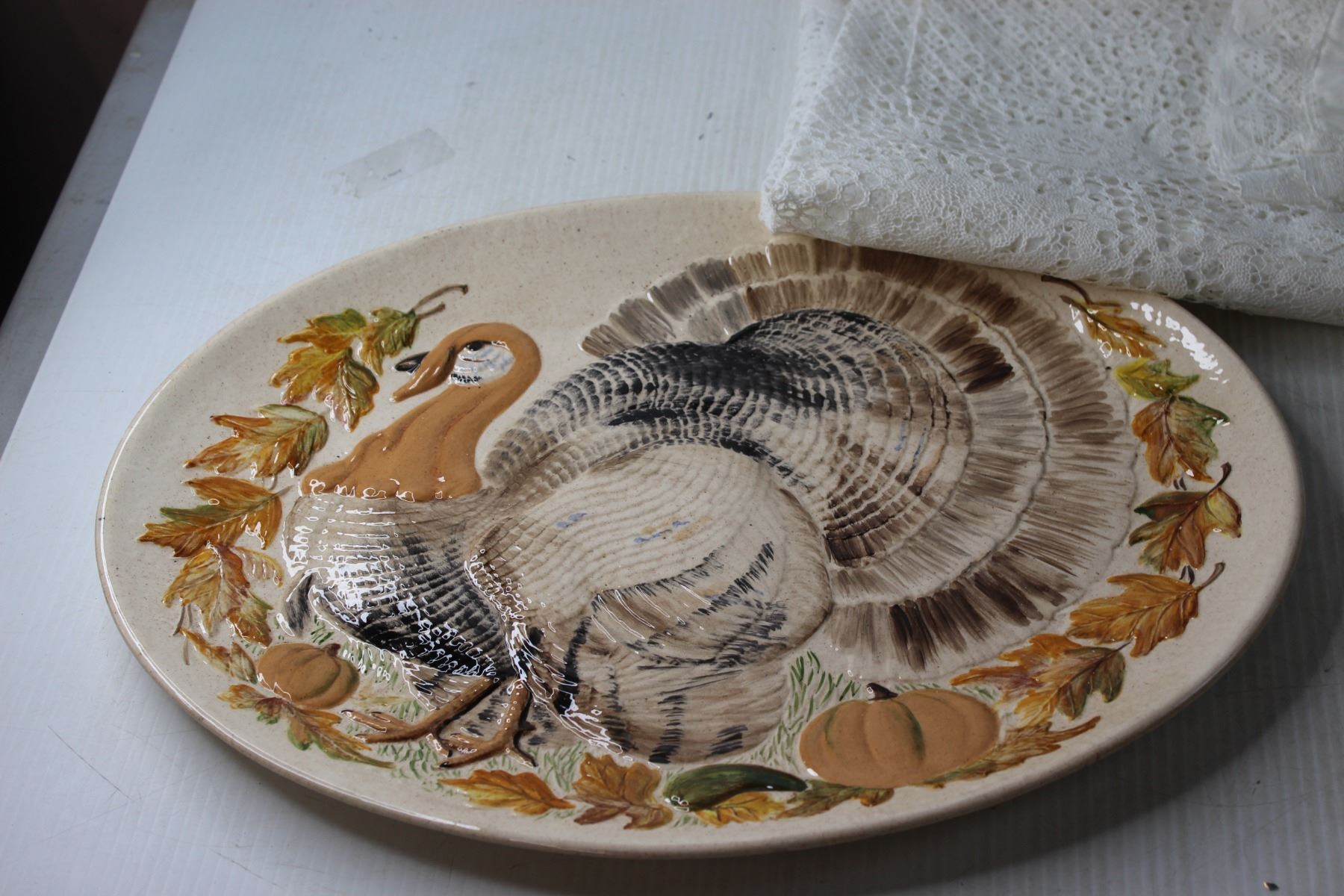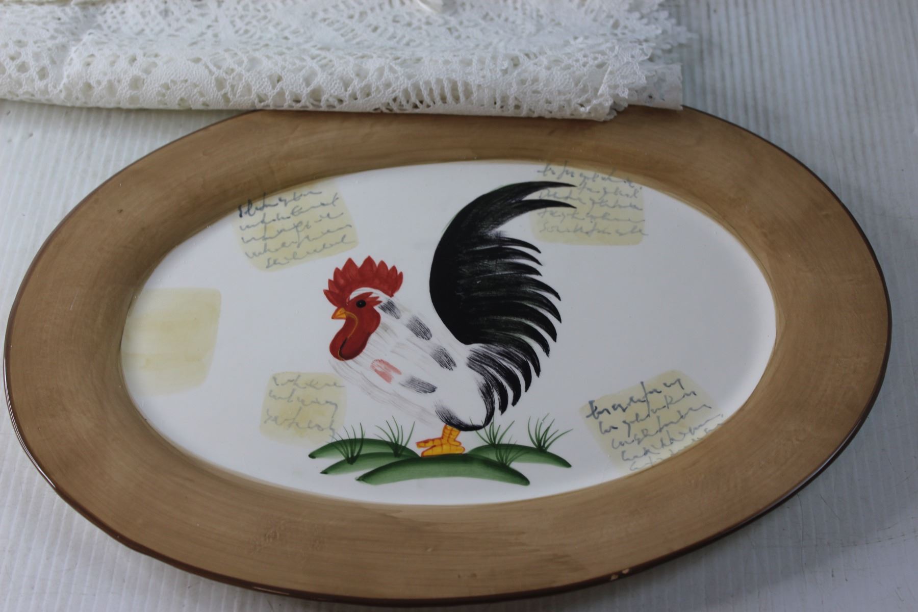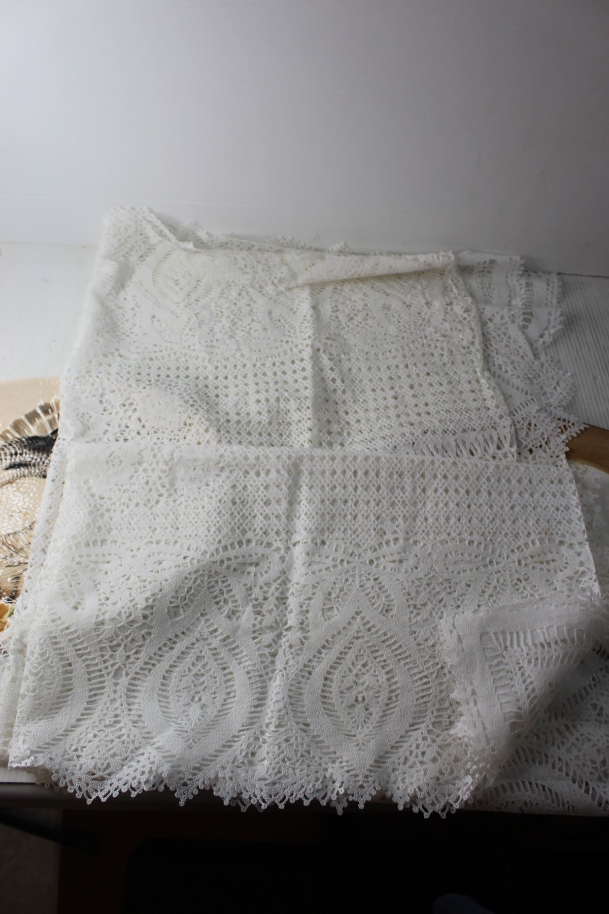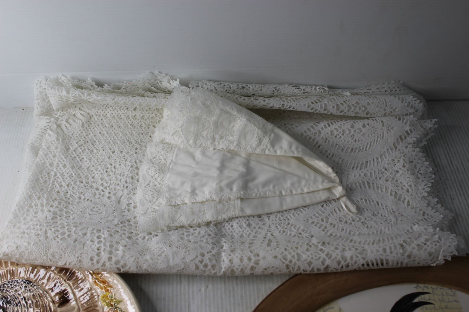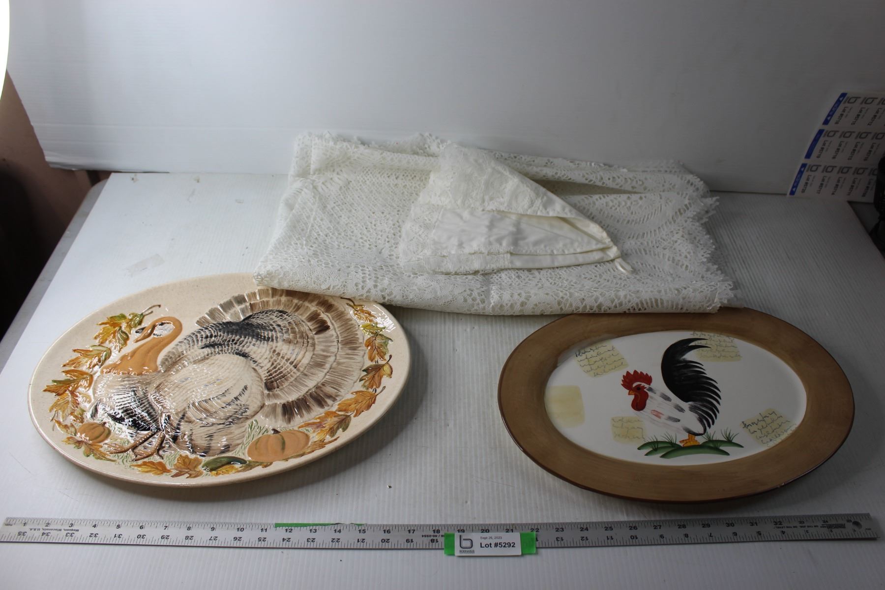 (2) Decorative Platters + Laced Table Cloth