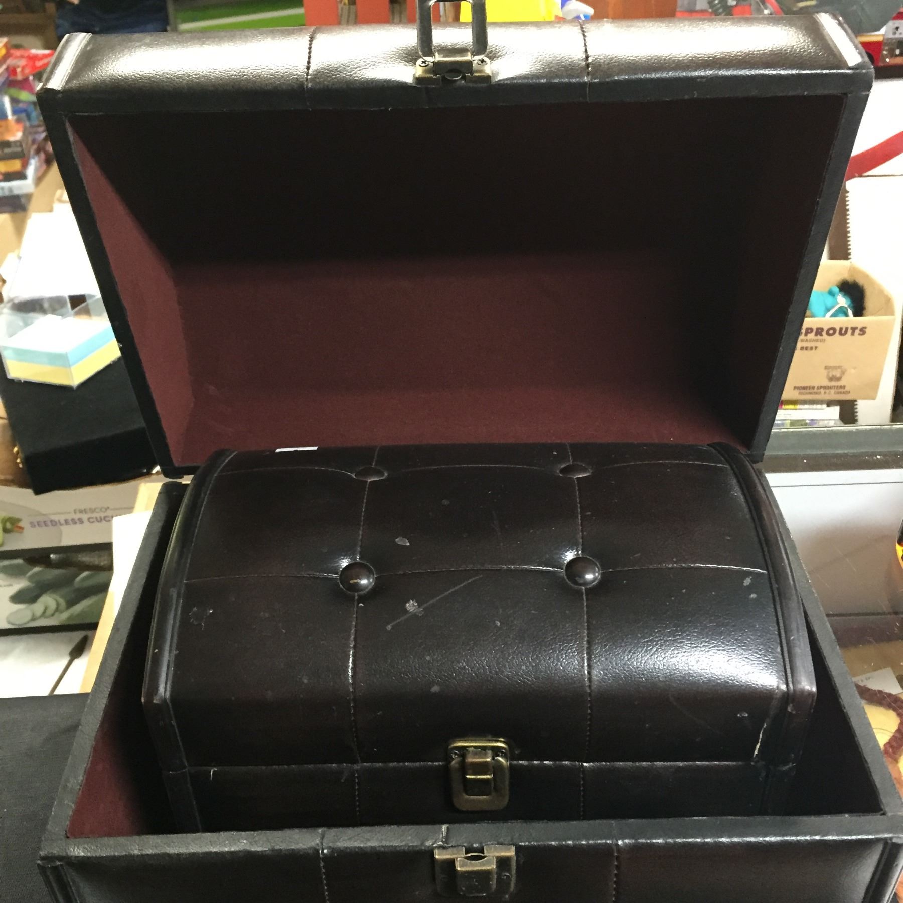 2 Decorative Small Padded Trunks 14" x 10" x9.5" and 11" x 7"x 8..5"