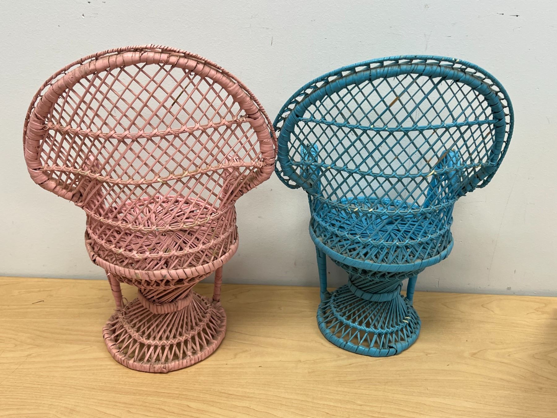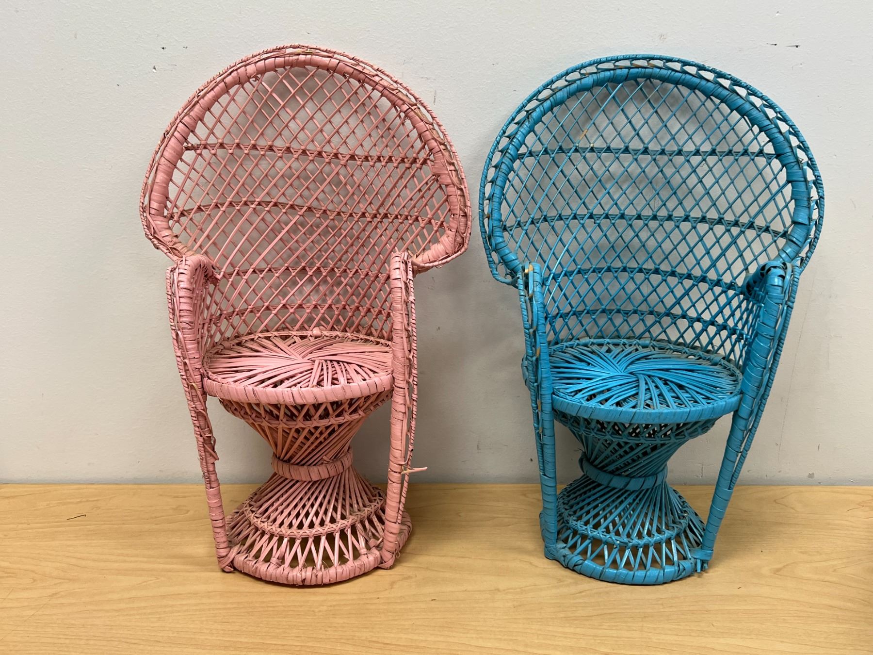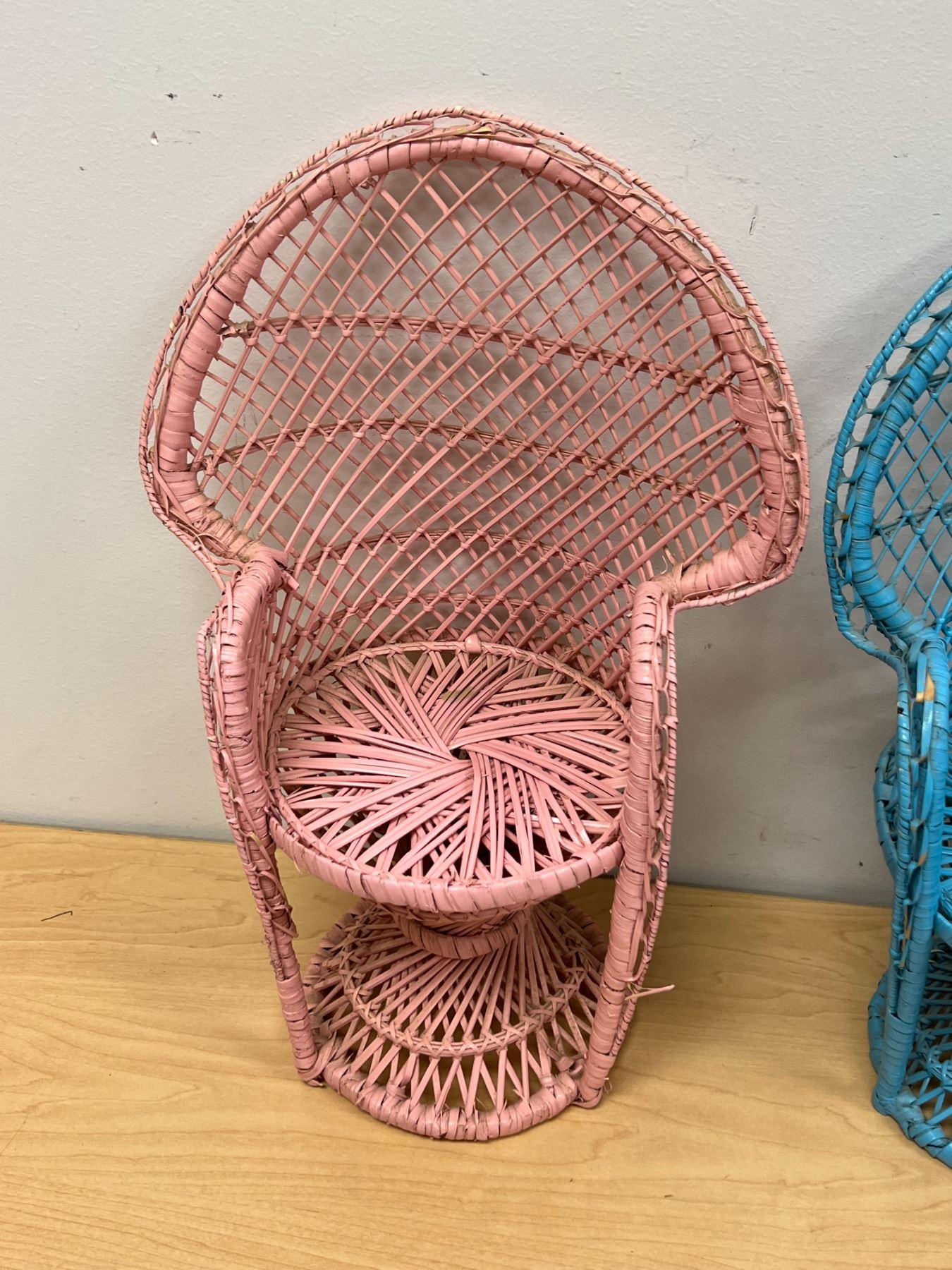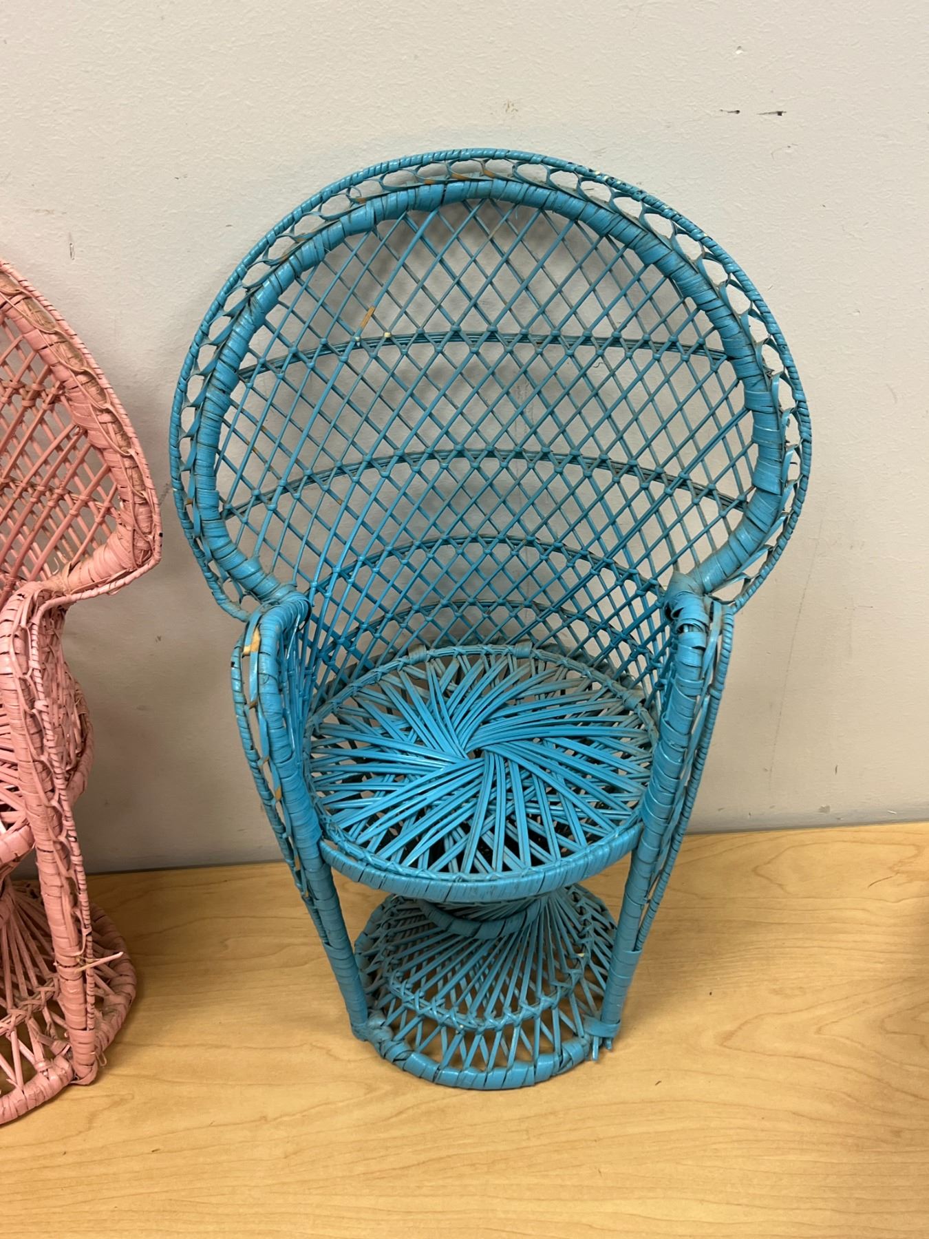 2 Decorative Wicker Peacock Style Chair Plant Stands / Holders - About 16" tall