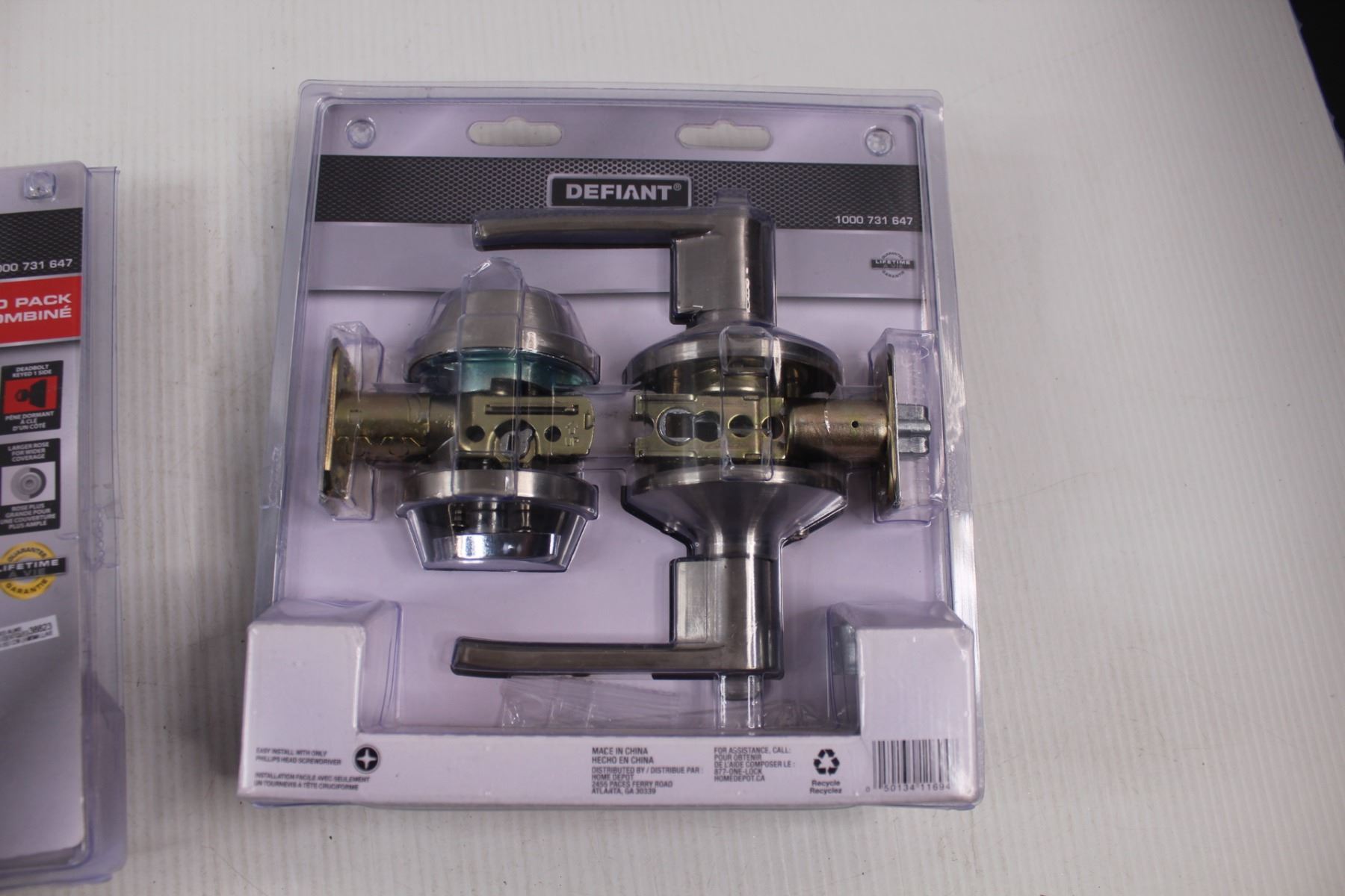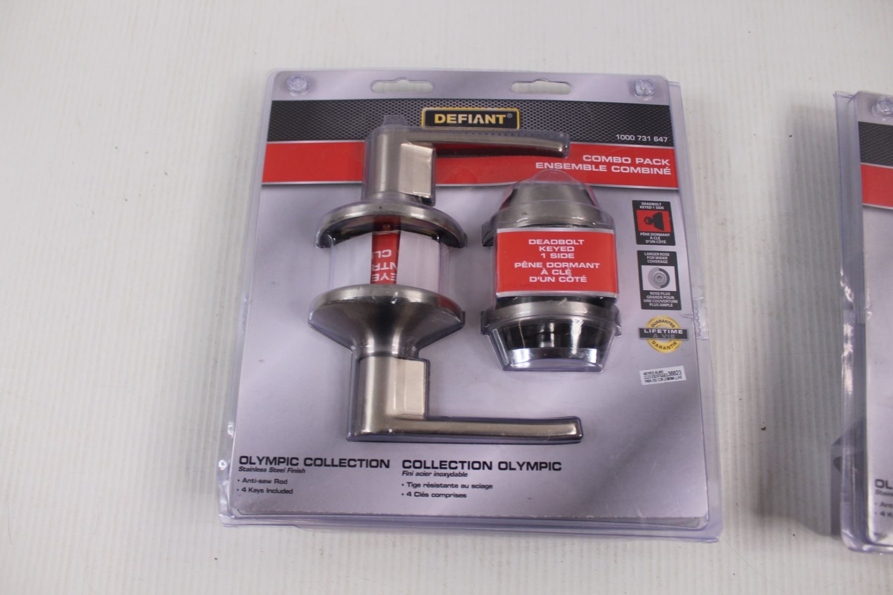 (2) Defiant Olympic Stainless Steel Dead Bolts & Level Style Keyed Entry Handles (Appears Complete But Have Been Opened)