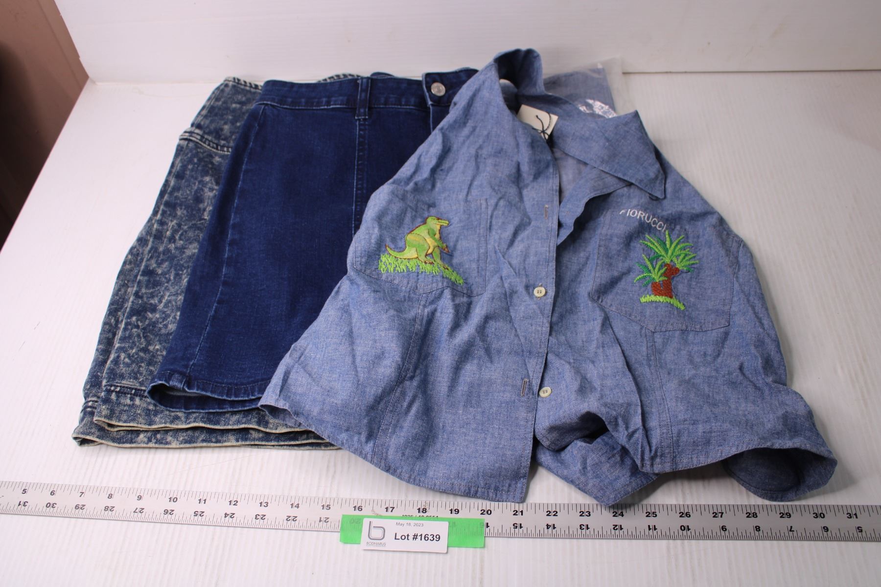 (2) Denim Mini Skirts and 2 NOS Halter Tops - Size Large to XL