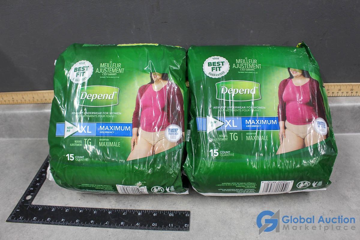 (2) Depends Packs of Underwear for Ladies Size XL