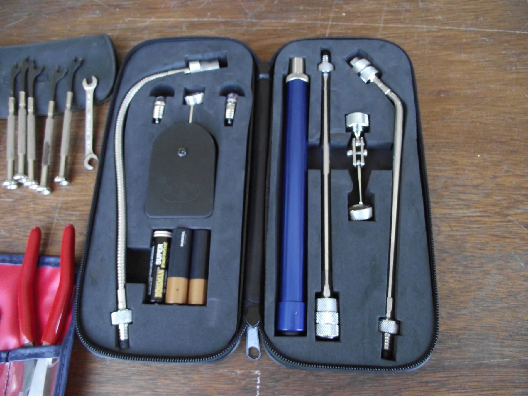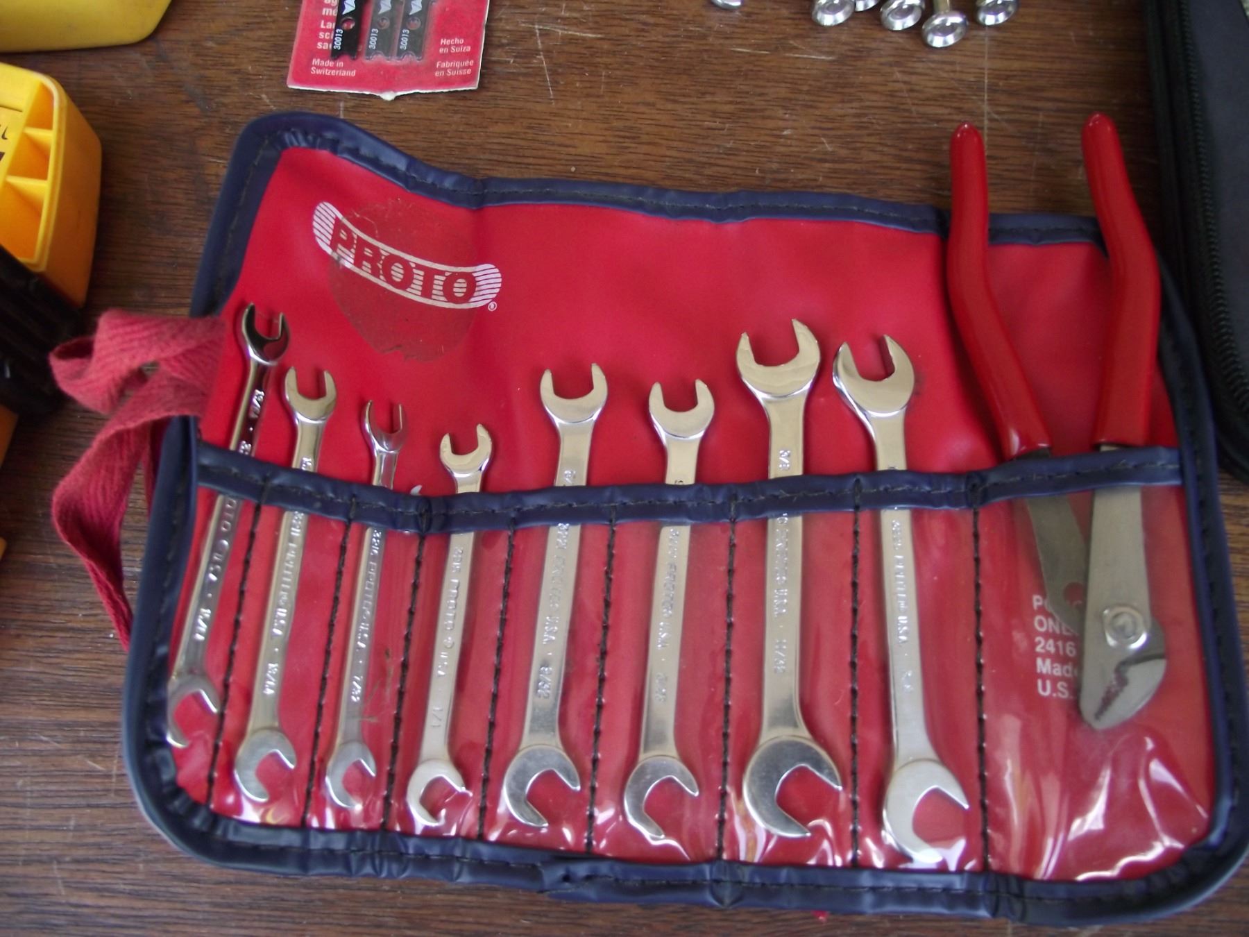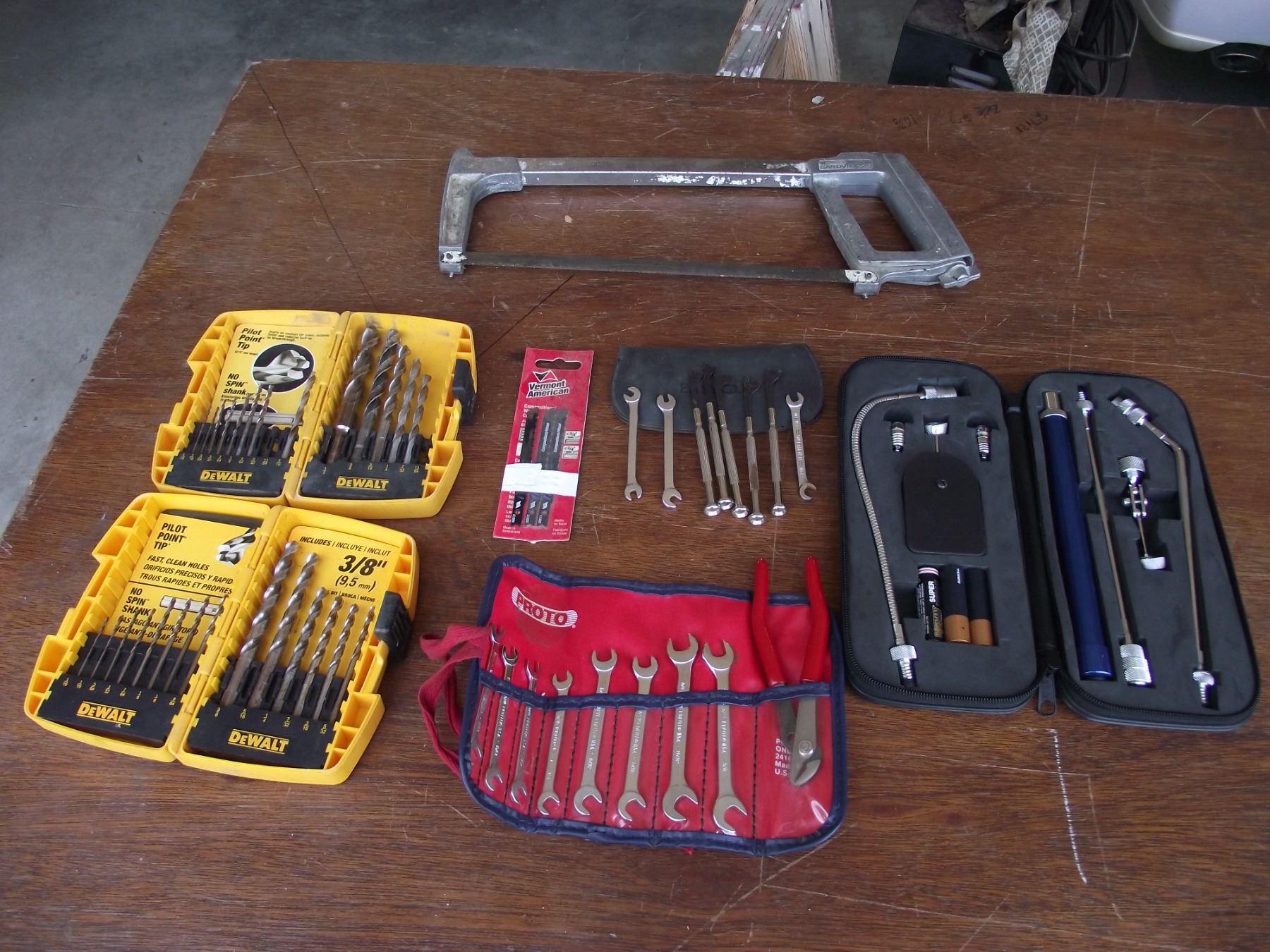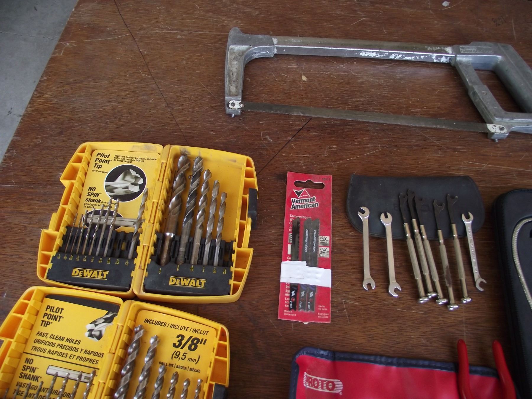 2-Dewalt drill bit sets, 2- sets small wrenches, mini light kit, 3-jig saw blades, and 1 hacksaw.