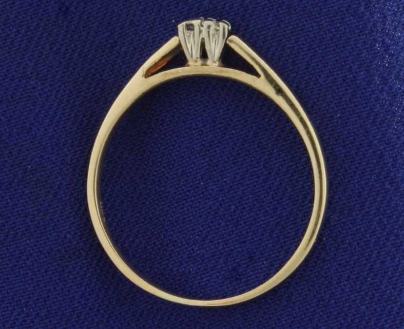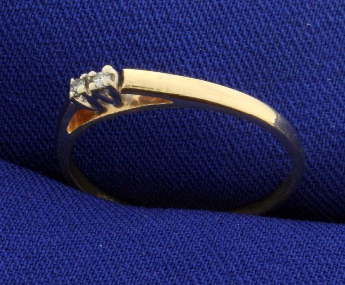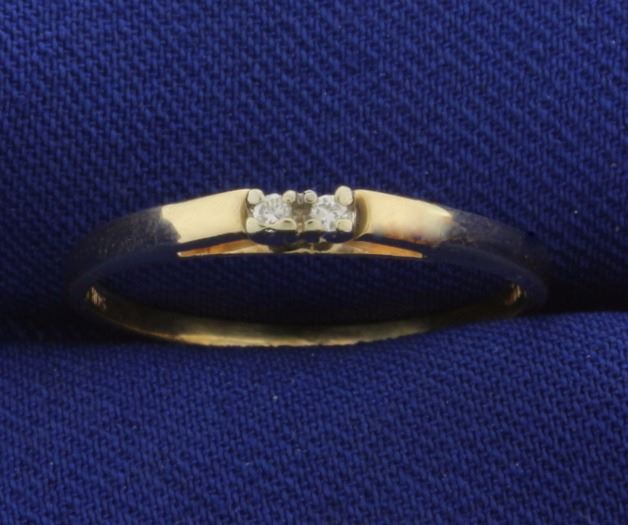 In 14k yellow gold. Contains two high quality .01ct diamonds of VS clarity/G color. Size 8 1/4. 1.7g.