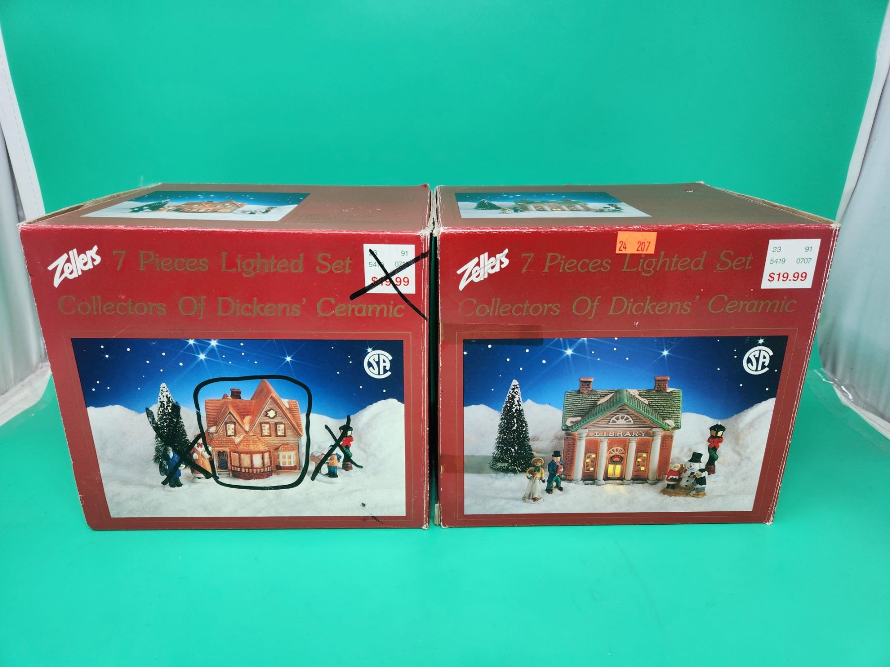2 Dickens' Ceramic Winter Village Buildings (Library & House)