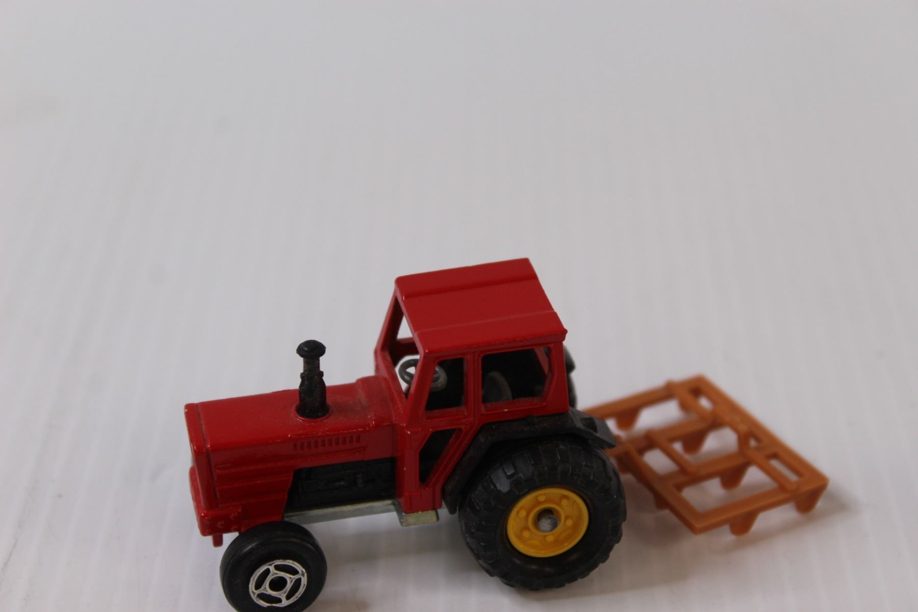 (2) Die Cast: Majorette Tractor & Harrow, Matchbox Ford Tractor -1978