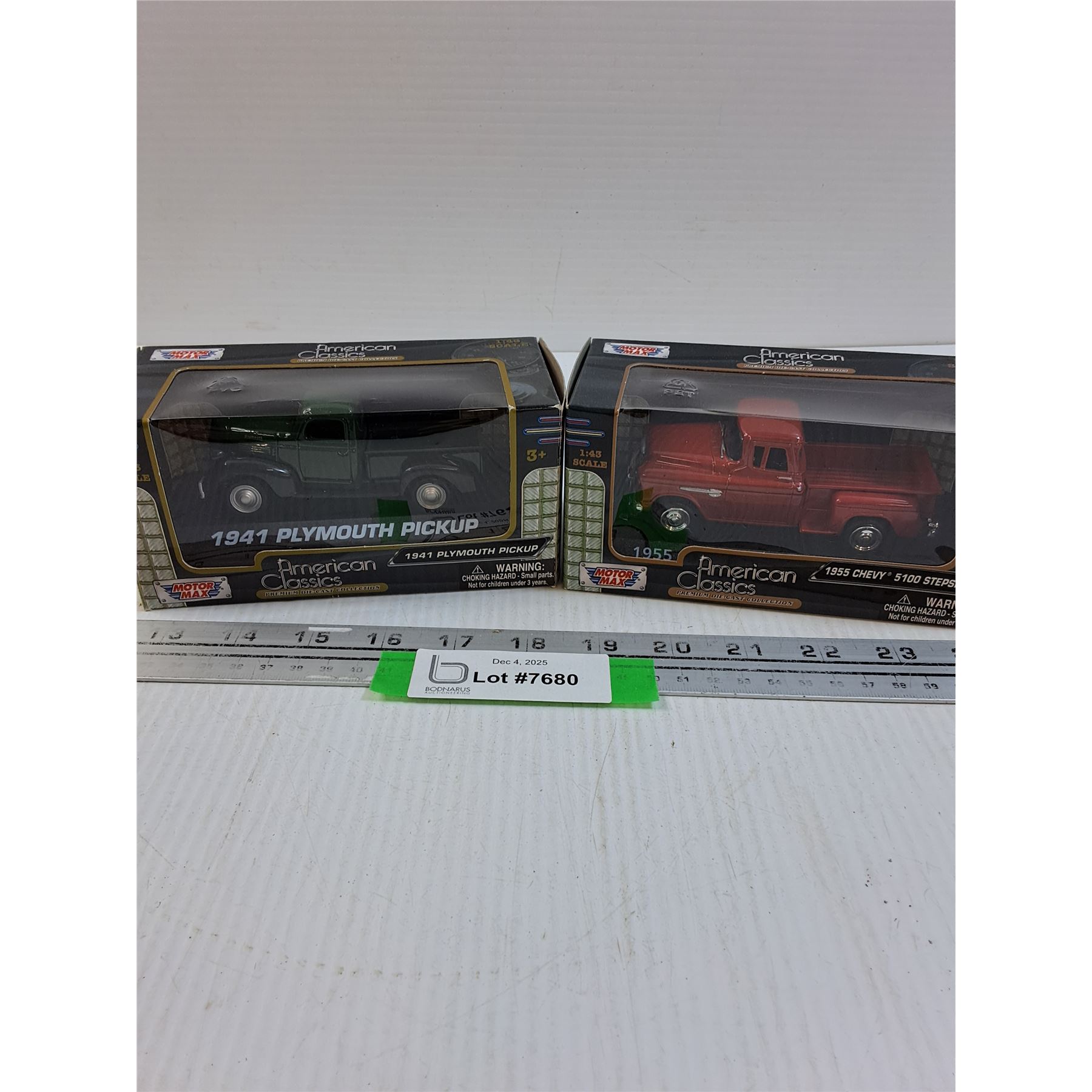 (2) Die Cast Vehicle Models: 1955 Chevy Pick-up & 1941 Plymouth Pick-up - 1:43 Scale